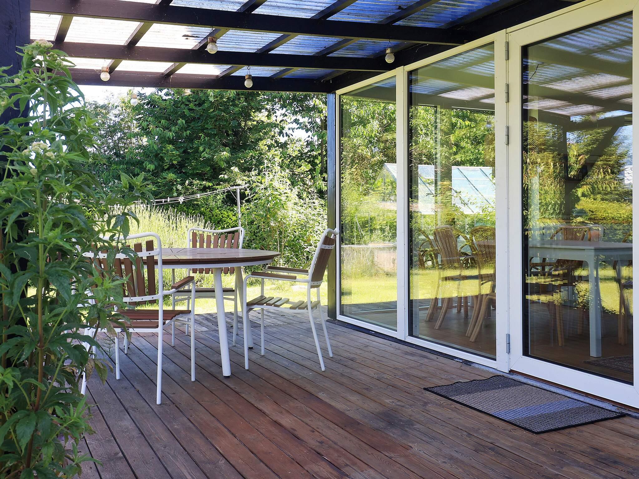 Fra stuen kan I gå direkte ud på den halvt overdækkede træterrasse og nyde solen i solvognen eller havemøblerne, og når der skal laves mad, kan I gøre det på kulgrillen. Huset ligger på en naturgrund på 1202 m2 med kig ned til Grønsund og plads til leg og hygge.