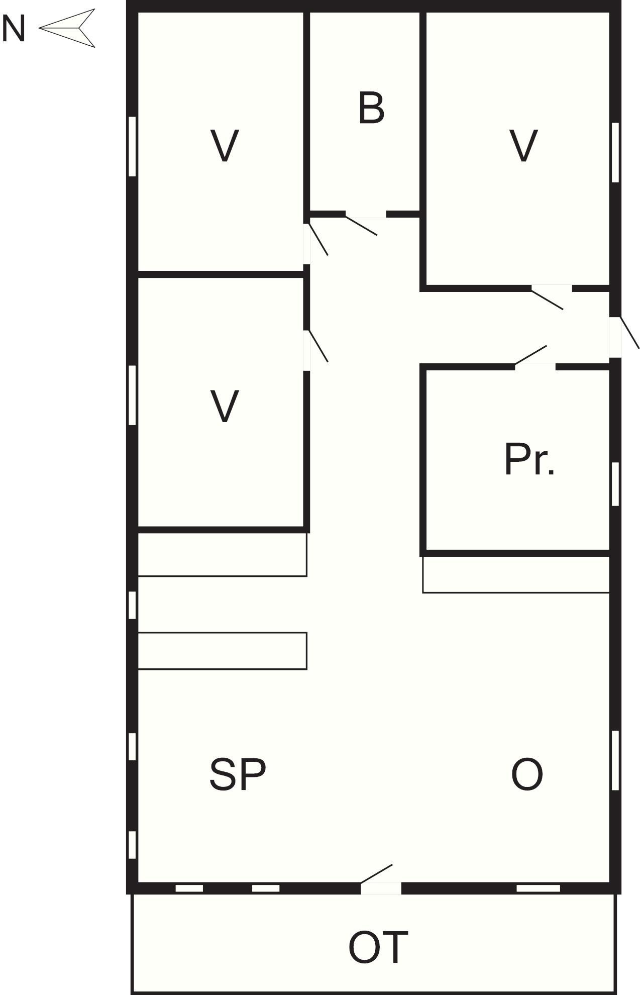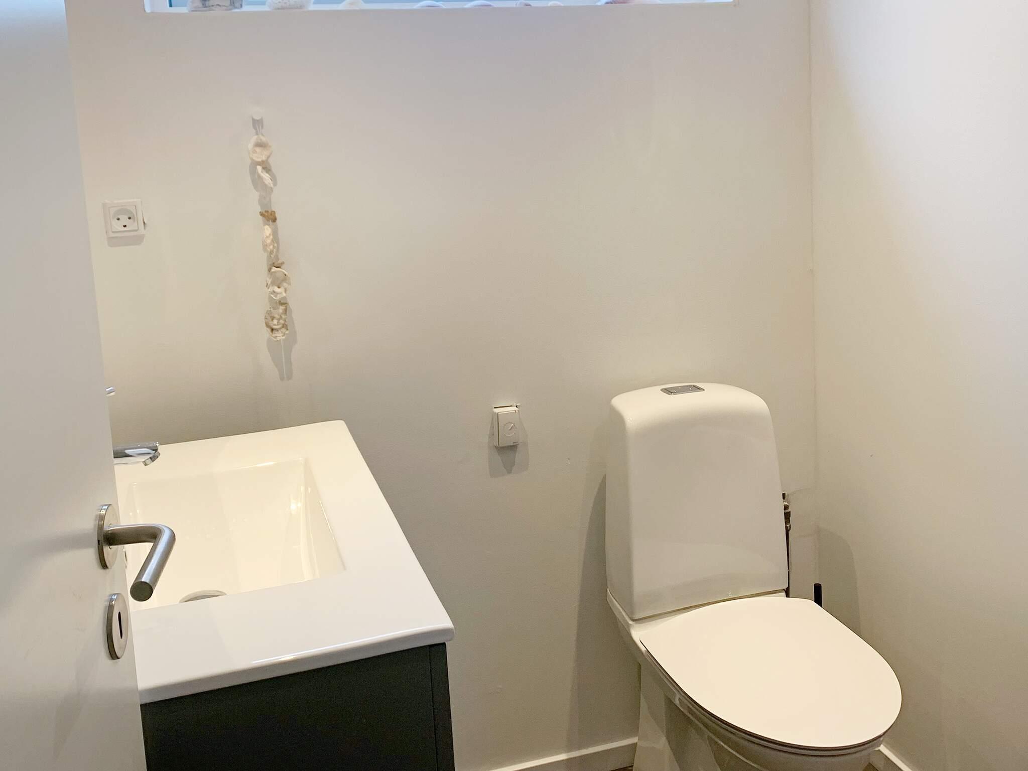 Der er tre soveværelser i sommerhuset, alle med dobbeltseng, som varmes op med radiator. På badeværelset er der toilet, håndvask, bruseniche.