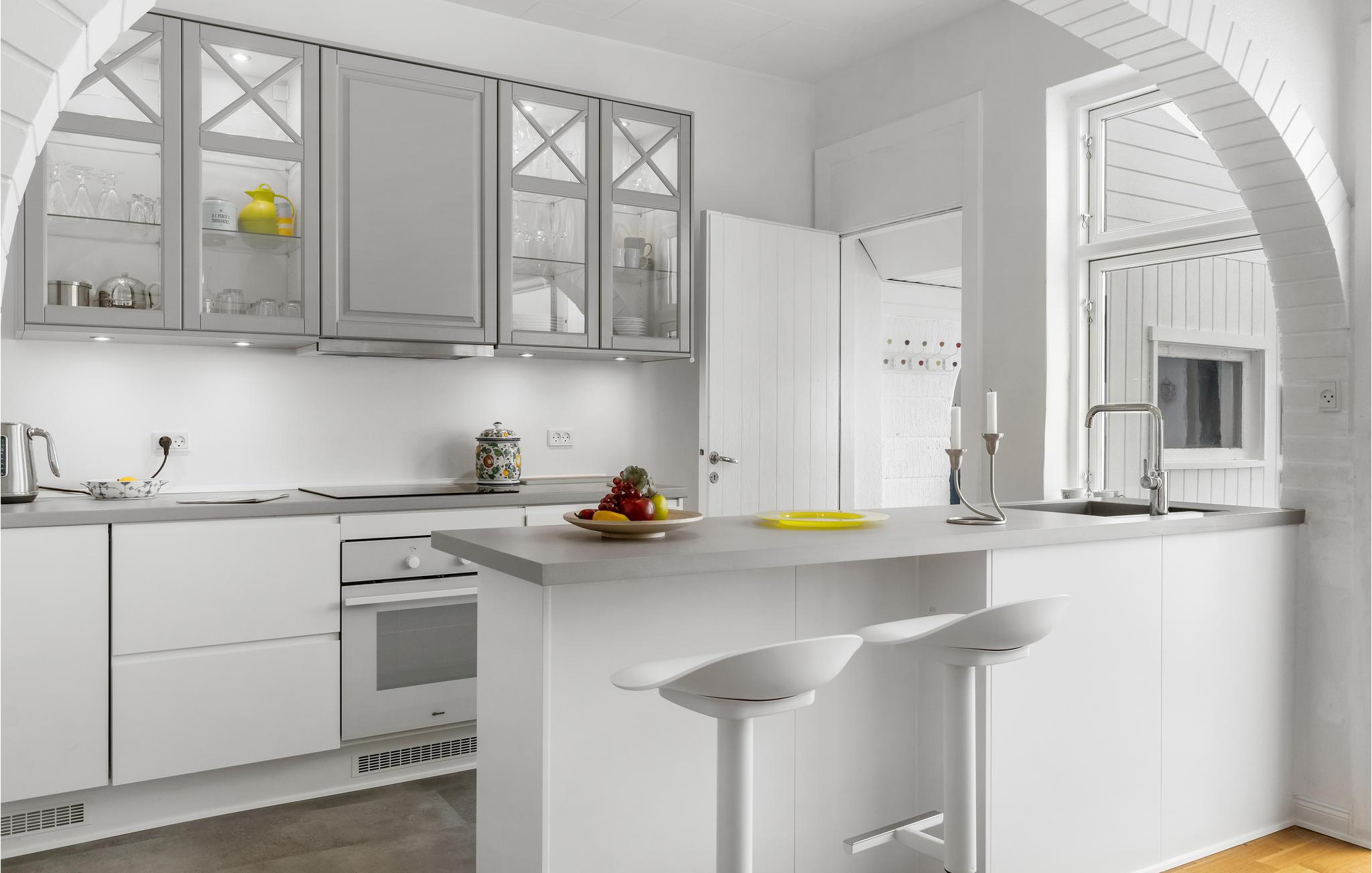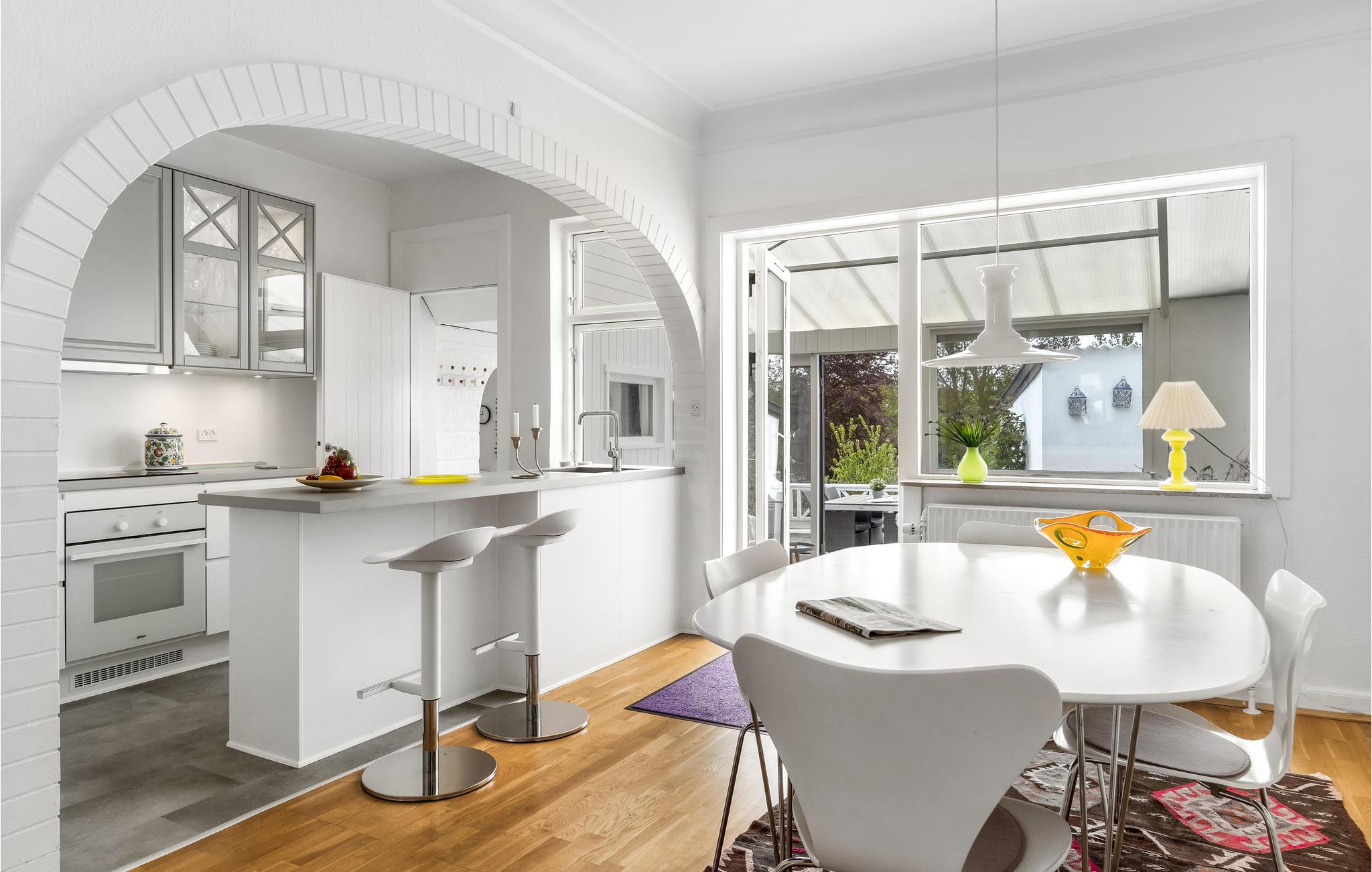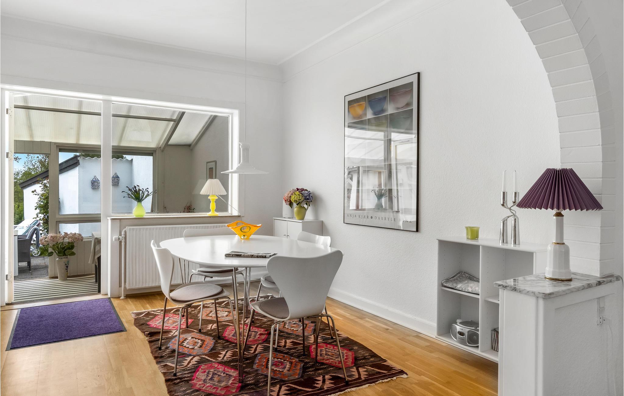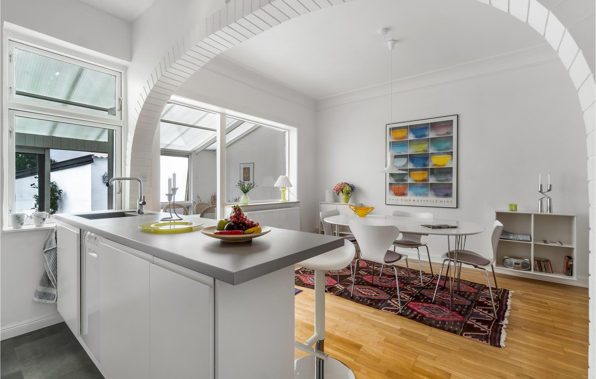 Ikke langt fra havnen på Falsters nordkyst finder I dette tiltalende feriehus. Huset med to etager er smagfuldt indrettet. Den flotte murstensbue former en naturlig og diskret skillelinje mellem køkkenet og stuen i en ellers åben planløsning, som indbyder til hyggelig fælles madlavning, spisning og afslapning. Der er også en udestue og en terrasse, hvor I kan spille kort eller bare nyde solen.