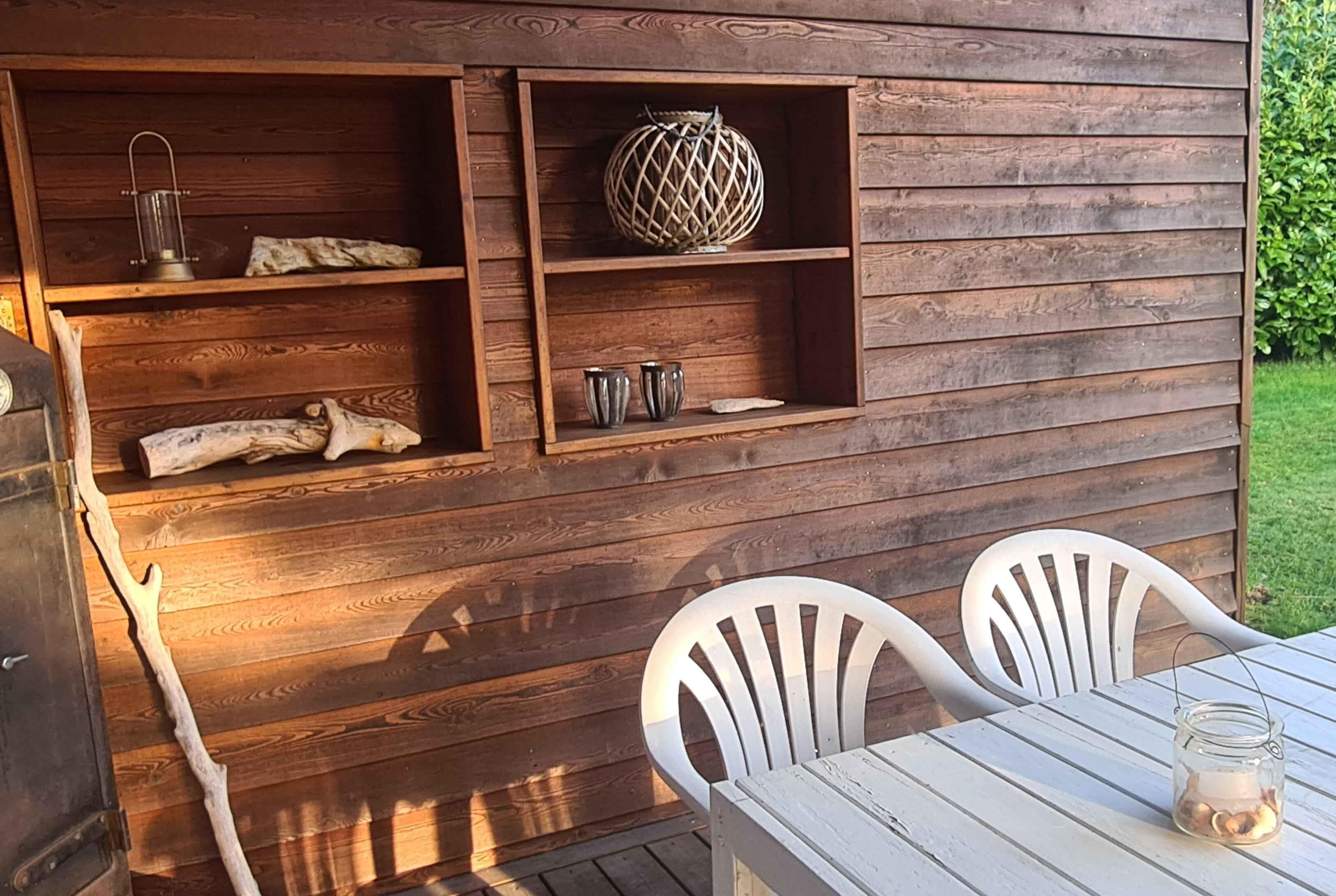 Sunset Lodge i Stubbekøbing byder på maritimt tema, stor træterrasse og unik havudsigt over Grønsund.