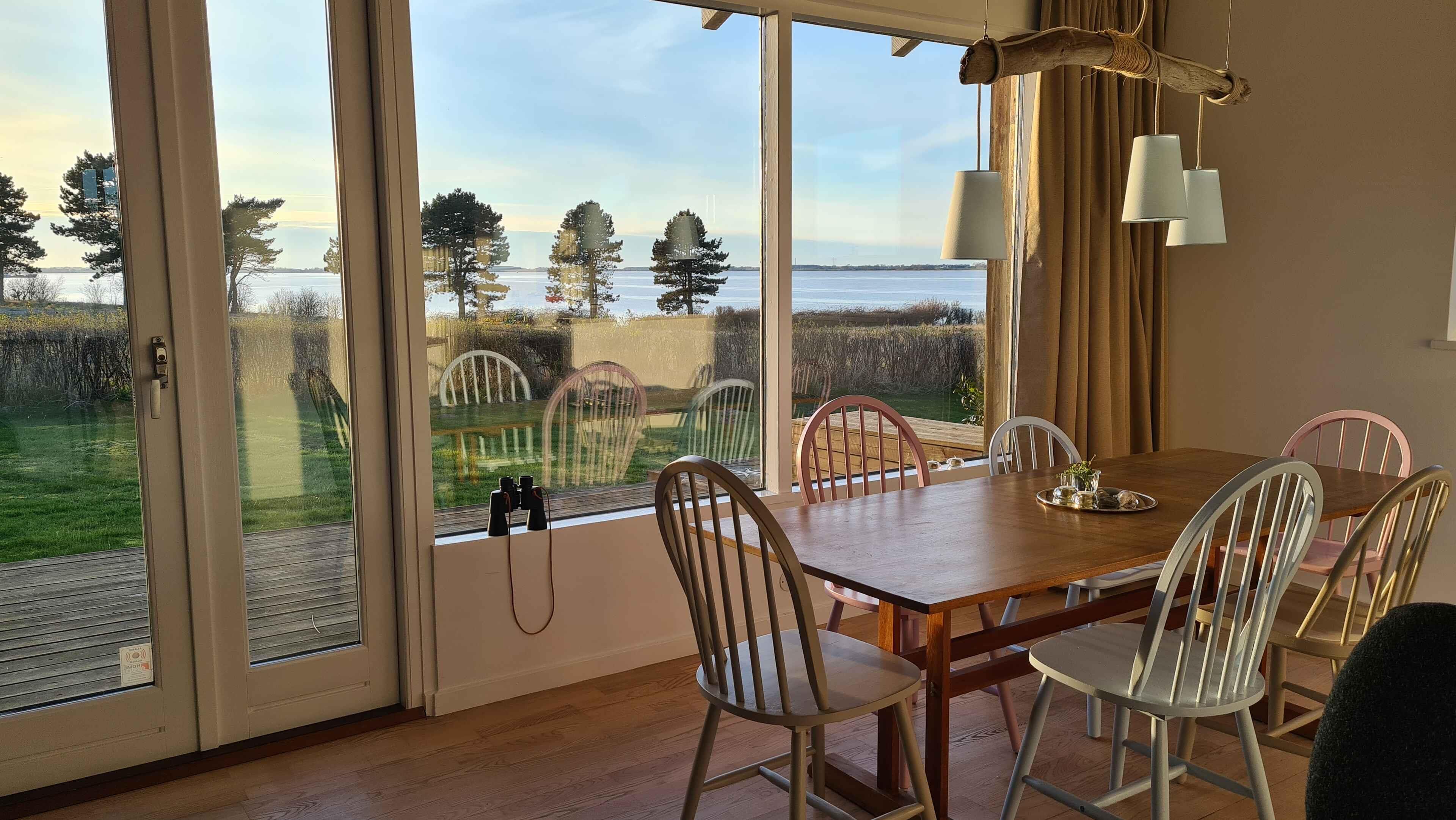 Solnedgangen over Grønsund er helt unik. Nyd den fascinerende og direkte udsigt over vandet fra den store træterrasse eller fra den store velindrettede stue. Det nyrenoverede sommerhus er indrettet med maritimt tema i lyse og imødekommende farver. Livet bliver bare bedst, når man nyder solen på den 78m 2 store delvist overdækkede træterrasse, hvor du altid kan finde læ, privatliv - og naturligvis havudsigt. Eller nyd dagens måltid indendørs ved det store spisebord og slap af i et af husets hyggekroge, imens I hele tiden har et øje på den helt enestående og dejlige udsigt over vandet til Bogø og Møn. Gå de kun 50 meter ned til vandet, og nyd den private strand med badebro, hvorfra du kan bade hele året. Gå videre langs stranden 2 km ind til den smukke, gamle købstad, Stubbekøbing, hvorfra færgen Ida sejler til Bogø i sommerhalvåret. Sunset Lodge er det perfekte udgangspunkt for udflugter til fx Hesnæs, Knuthenborg eller Møns Klint. Her får I et dejligt, nyrenoveret hus, med hyggelige finesser og fokus på den nære beliggenhed til vandet. Obs, udlejes ikke til erhversmæssigt brug.