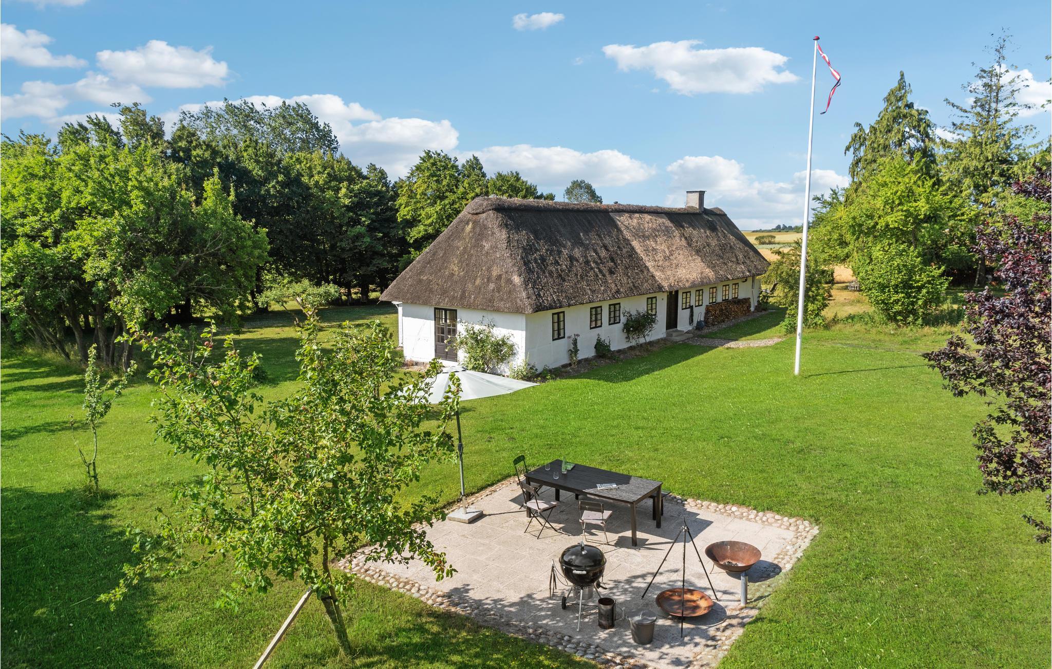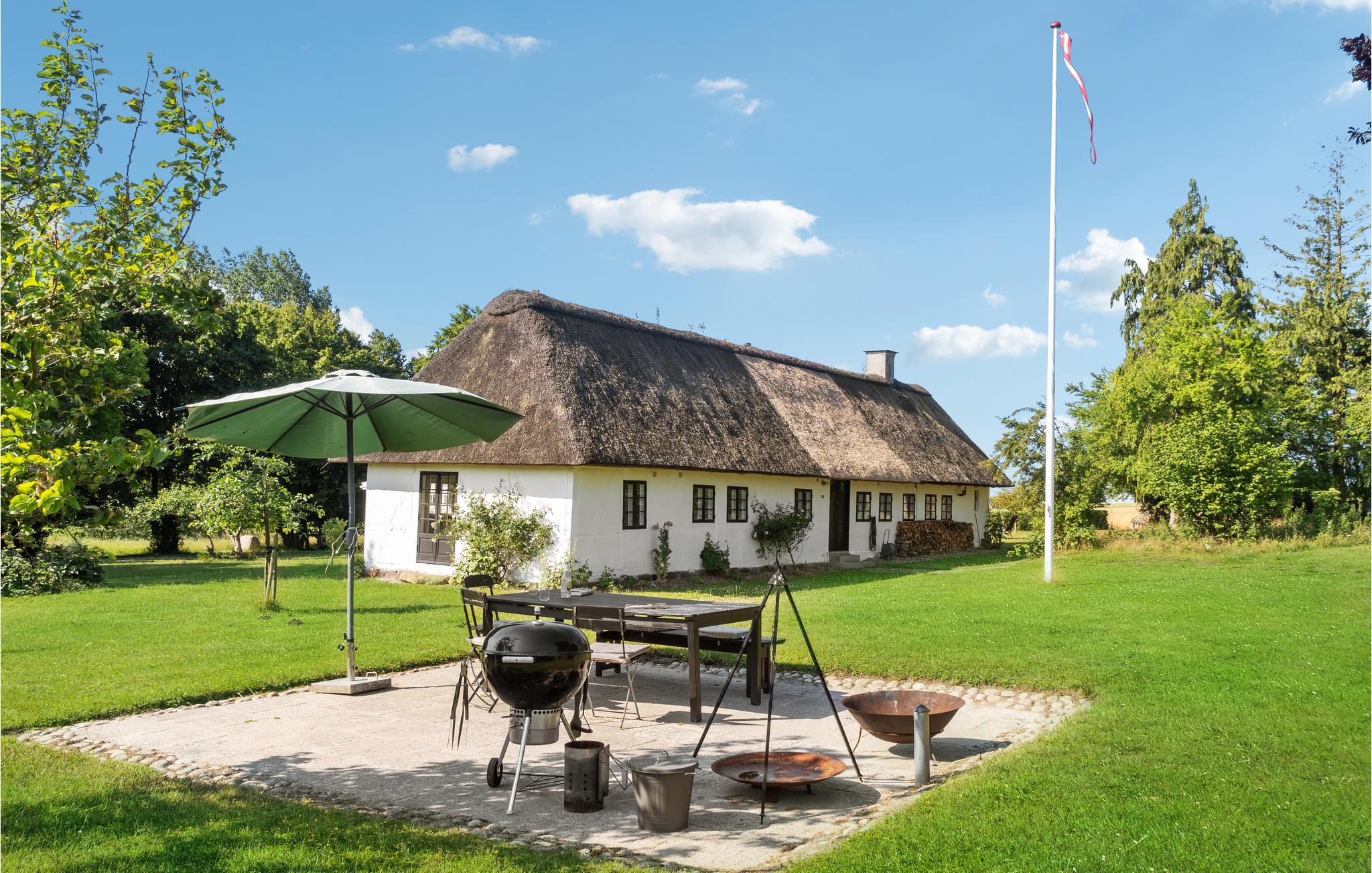 Drømmer I om fred og landlig idyl? Så er dette smukke feriehus med stråtag og en stor have måske det helt rigtige for jer.