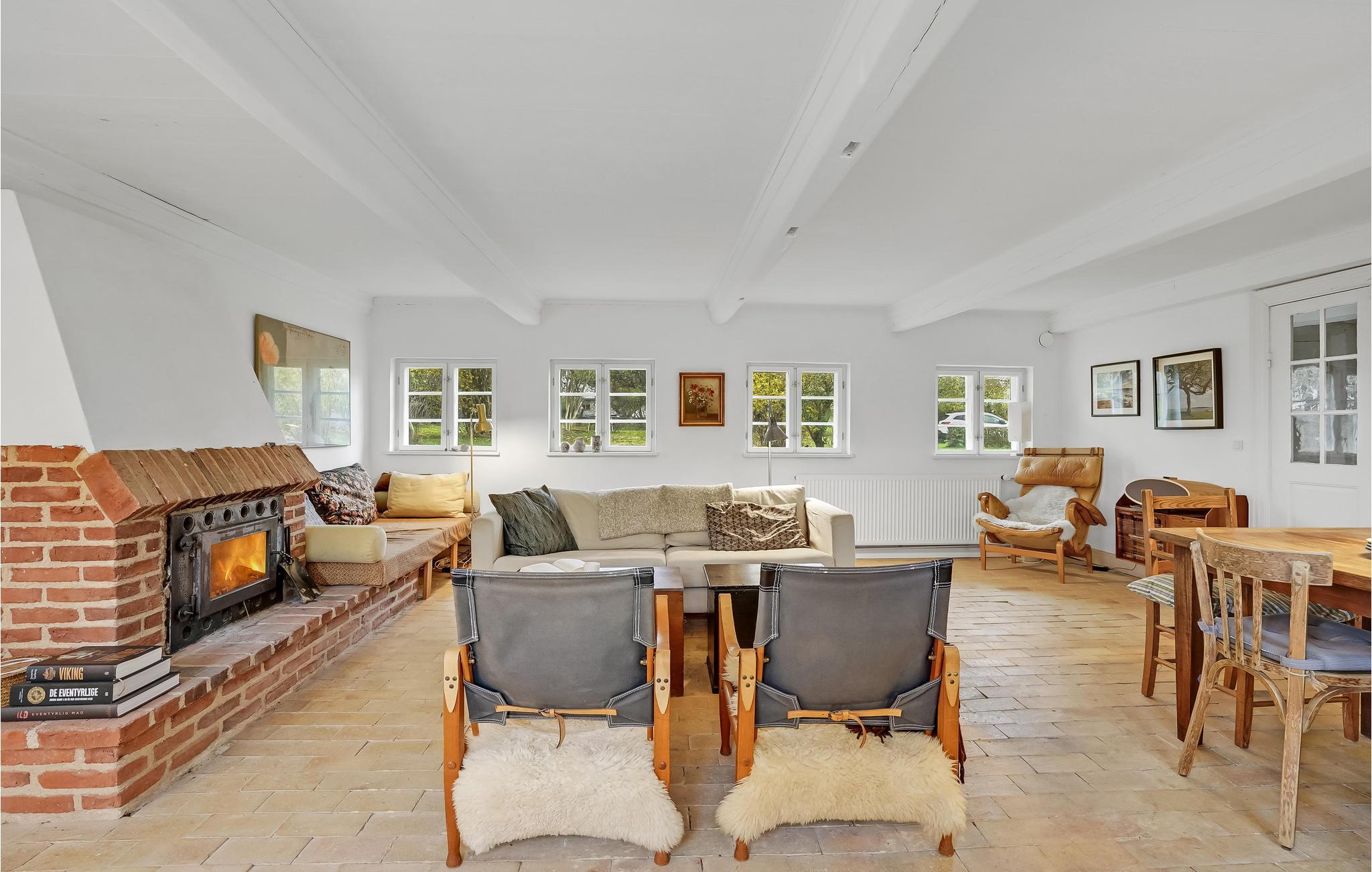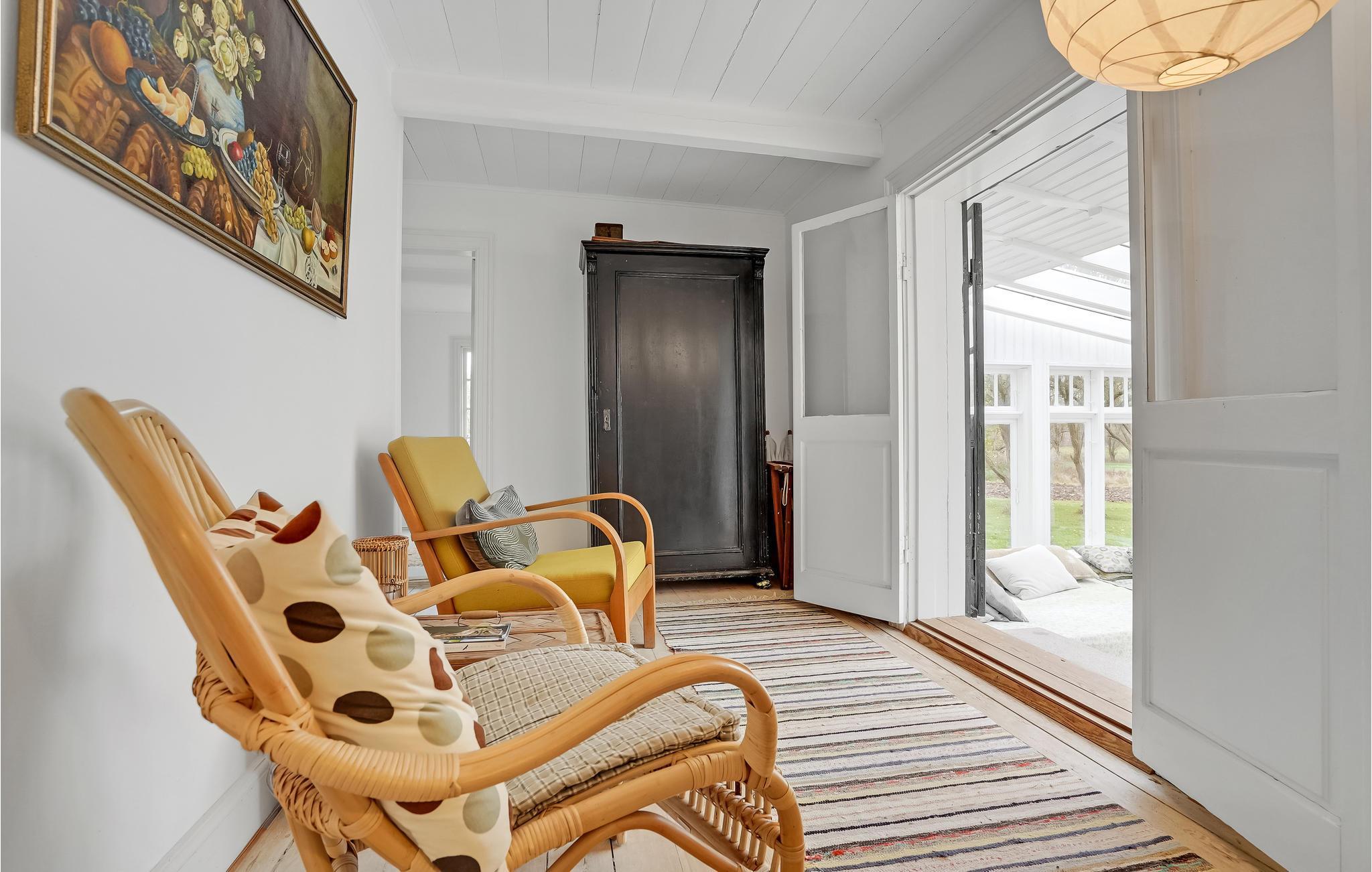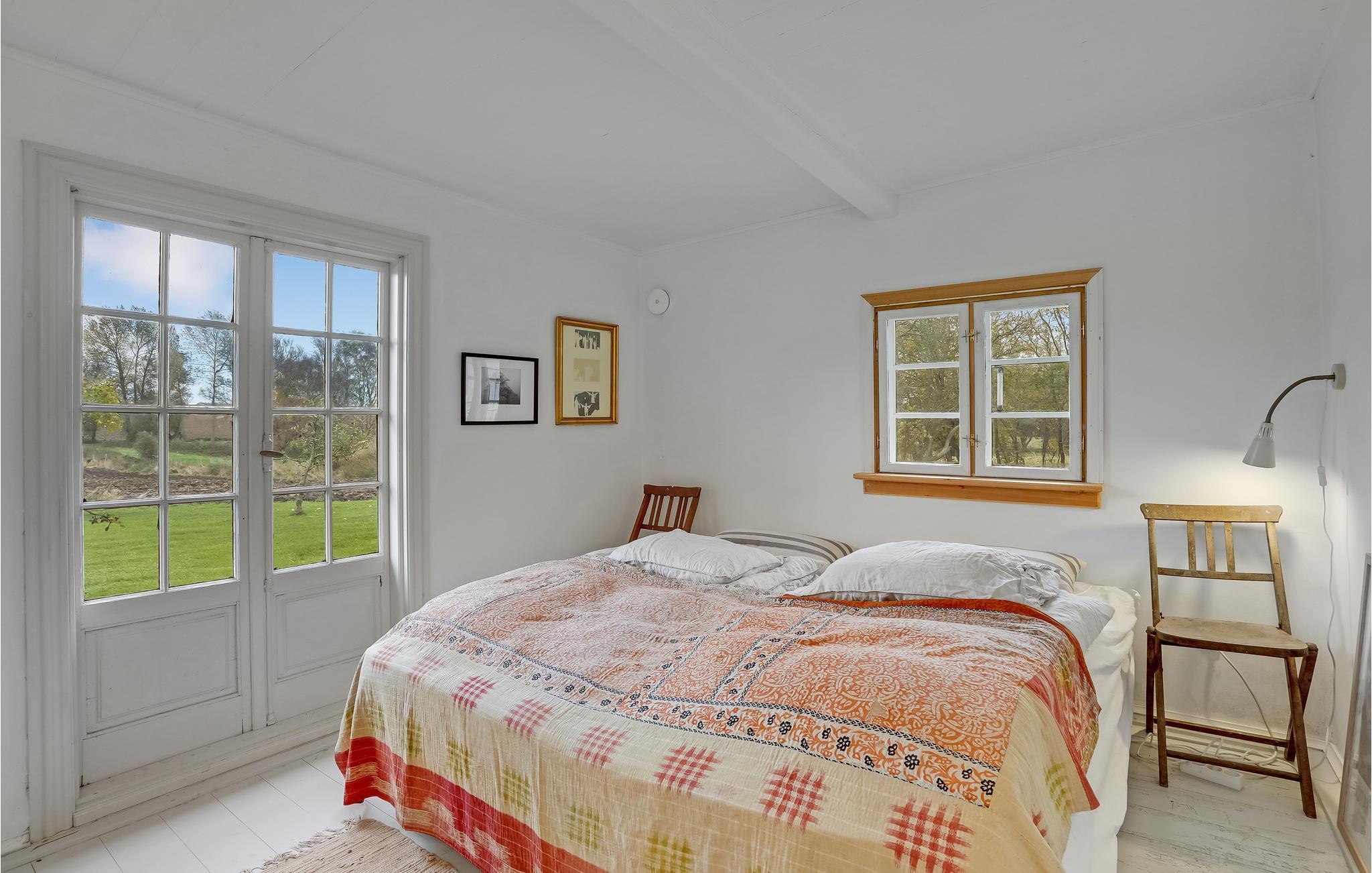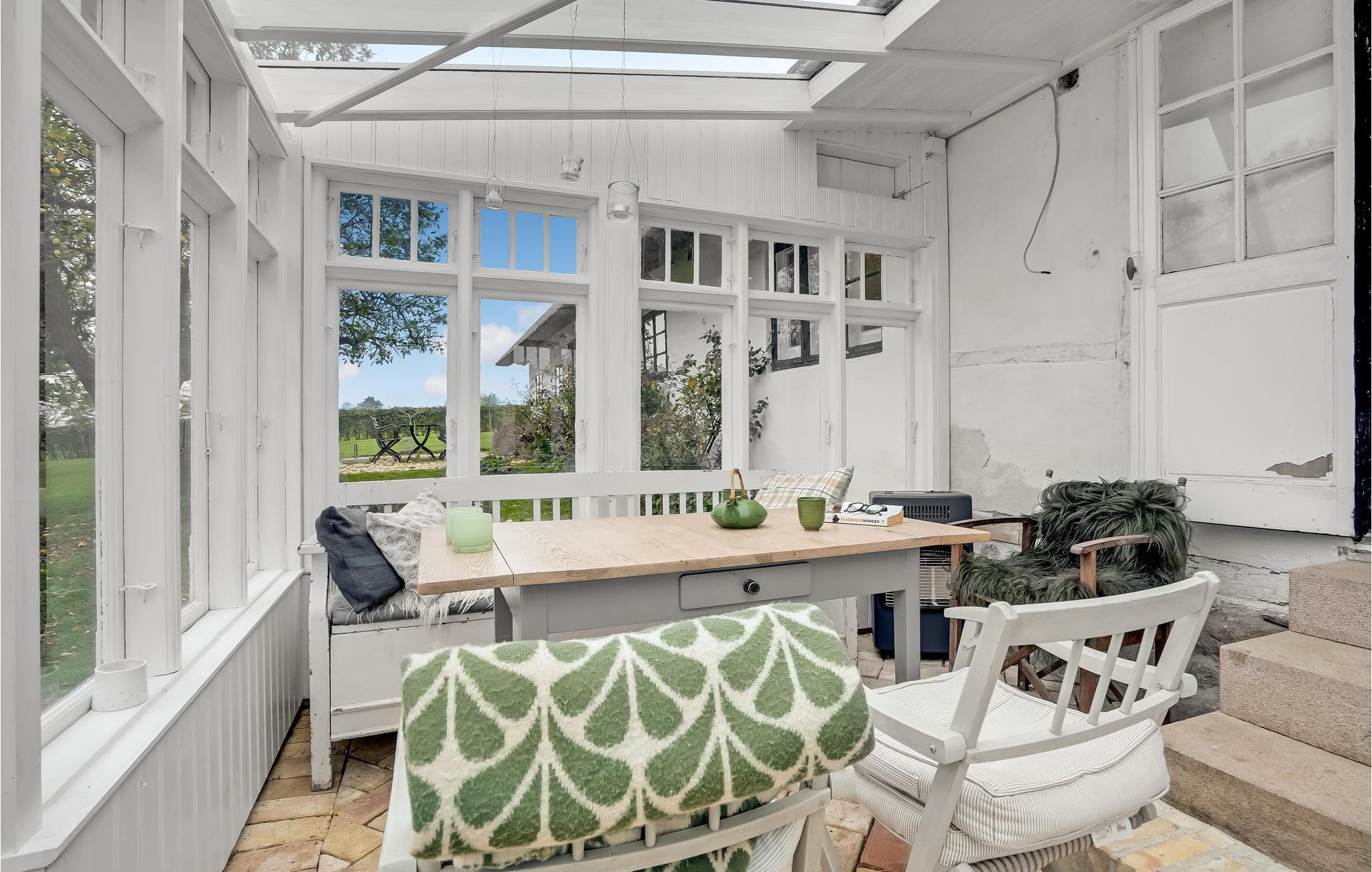 Dette skønne feriehus ligger i landlige omgivelser nær Lollands sydkyst. Udnyt det rummelige, moderne køkken til at lave mad sammen, og tilbring stemningsfulde aftener foran den smukke murede pejs. I finder det perfekte sted til afslappende læsetimer i den smukke udestue, hvor I af og til kan lade blikket vandre ud over omgivelserne. Den store have byder på flere gamle træer og hyggelige siddepladser, der inviterer jer til at slappe af og nyde livet. Sæt jer til rette ved havebordet med en kop friskbrygget morgenkaffe eller nyd udsigten over markerne fra bænken – måske kommer der rådyr forbi? Takket være det rummelige grønne område bliver haven helt sikkert et populært sted for børn at lege.