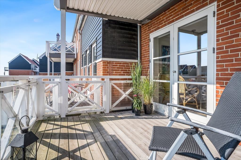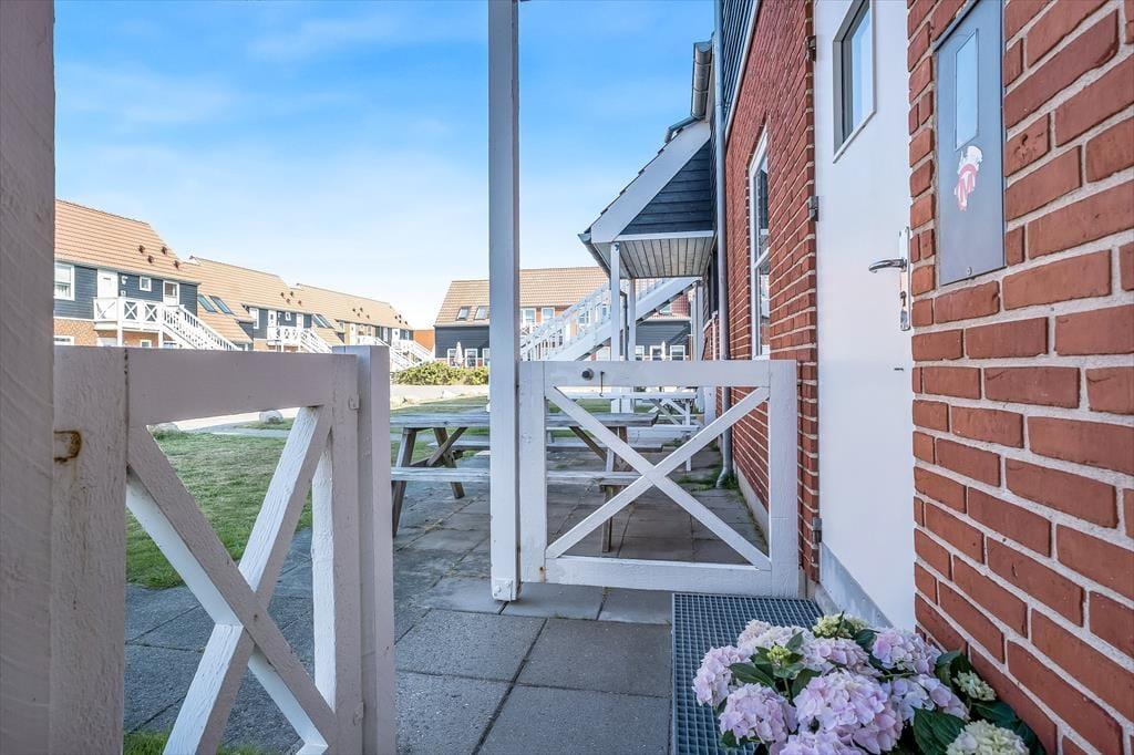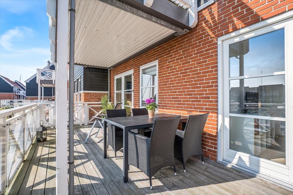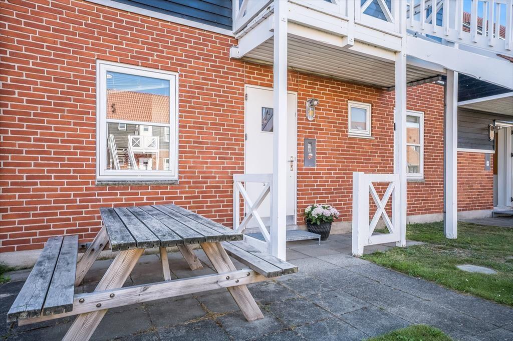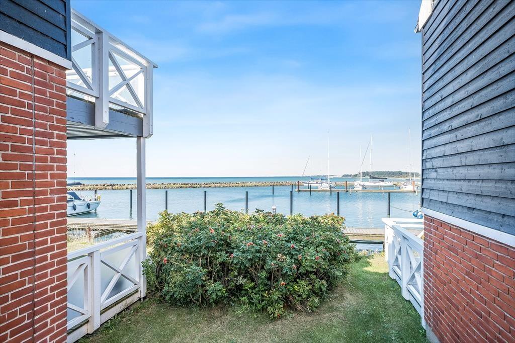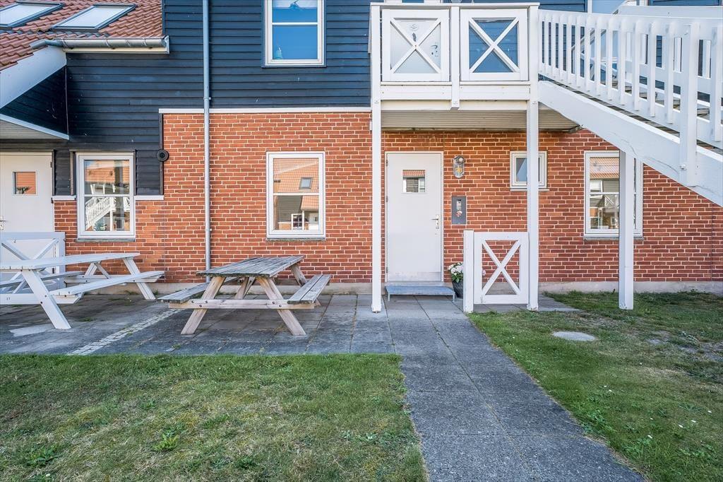 Lejligheden har en fin delvis overdækket terrasse med adgang fra stuen og her er havemøbler, hvor I kan nyde jeres måltider og de lune aftner. Ved lejlighedens hoveddør finder I også en lille fliseterrasse med bord/bænkesæt, så I kan selv vælge, om I vil sidde i sol eller skygge. Fra lejligheden har du skøn udsigt til marinaen og du er tæt på badestrand. Den gode beliggenhed gør, at på den ene side af lejligheden, kan du købe friske fisk, og på den anden side af lejligheden, kan du selv nyde din fisk på terrassen.