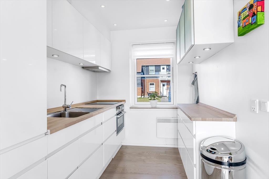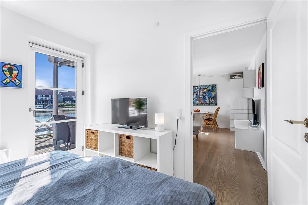Her får I en ferielejlighed med nyt køkken og stue ud i et, og I kan tage jeres mad med direkte ud på terrassen og sidde og nyde udsigten til vandet. I stuen kan I hygge om aftenen og slappe af ovenpå en dag med masser af oplevelser, her kan I se Streaming TV eller benytte internettet. Lejligheden har et værelse med 2 enkeltsenge og streaming TV og et værelse med 1 dobbeltseng. Nyistandsat badeværelse med toilet og håndvask og bruseniche.