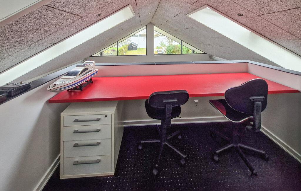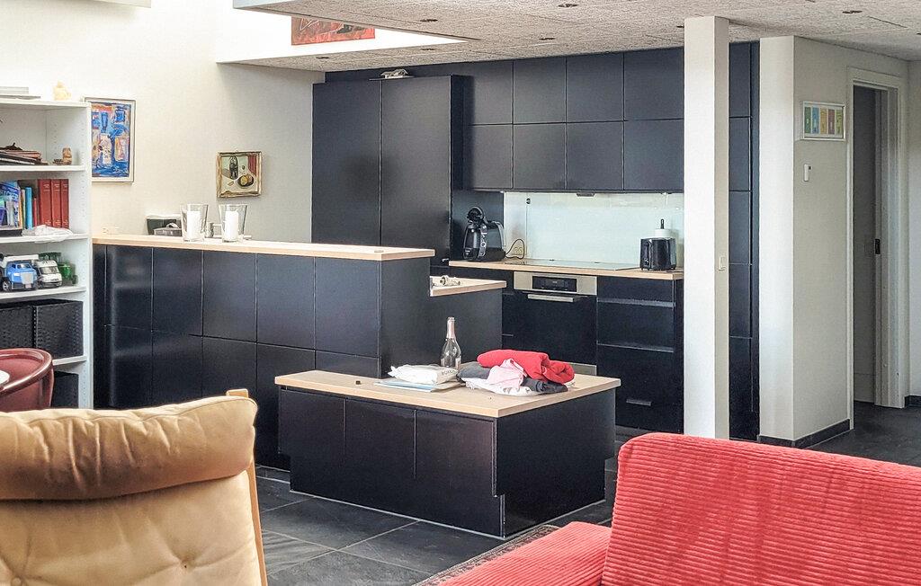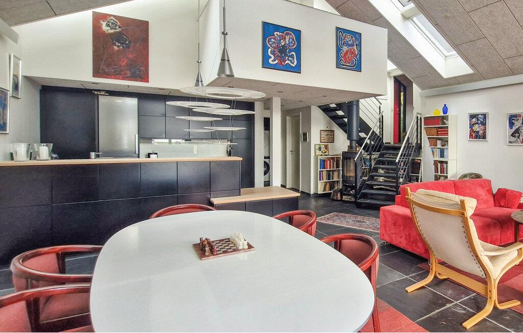 Nyd jeres ophold i dette enestående feriehus, der imponerer med sin rene arkitektur og direkte placering ved vandet. Træd indenfor, og lad jer betage af den rummelige indretning. De høje lofter, store vinduespartier og den åbne opholdsstue skaber et lyst og indbydende miljø. Hyg jer sammen i de komfortable møbler, og nyd udsigten over søen. Det moderne køkken er elegant integreret i opholdsrummet og har alt, hvad I behøver til fælles madlavning og hyggelige måltider. Spiseområdet med sine smukke møbler indbyder til lange aftener med god mad og hyggesnak. Kvalitetsmaterialer, kunst på væggene og et spabad på badeværelset fuldender den eksklusive atmosfære.