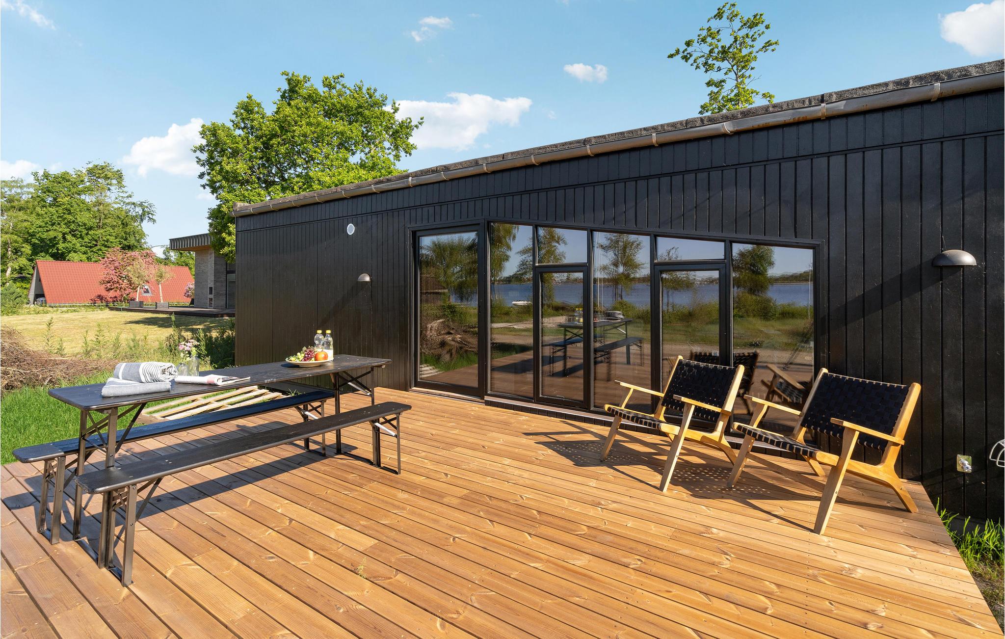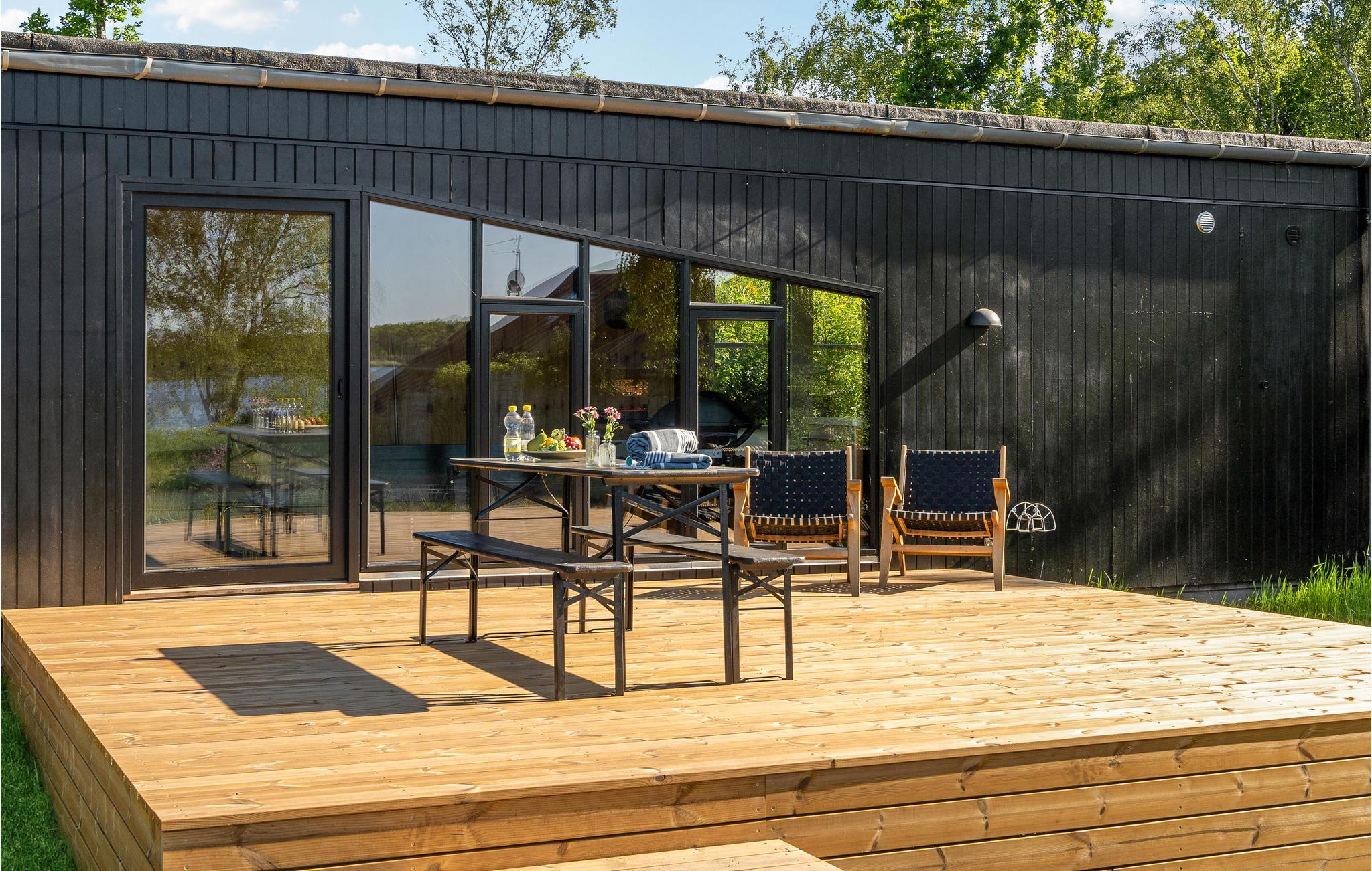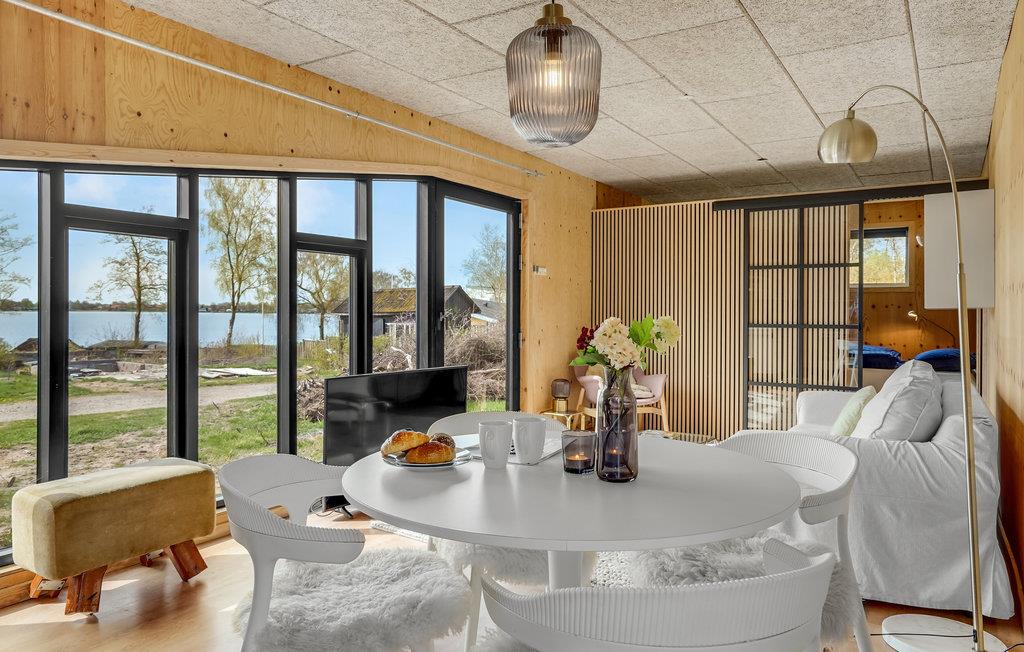 Velkommen til en helt igennem idyllisk beliggenhed, hvor alle, der lader op i naturen, får de bedst tænkelige rammer. Boligen er lys, åben og har et skønt, gedigent udtryk på grund af de mange træelementer, som skaber en hyggelig varme i boligen. Her kan I nyde de stilfulde rammer og glæde jer over de elegante vinduespartier, som får inde og ude til at smelte sammen. Glæd jer til en masse hyggelige stunder i opholdsrummet, hvor I kan slappe af med brætspil og sætte jer til rette med dagens måltider, mens I nyder udsigten over søen.