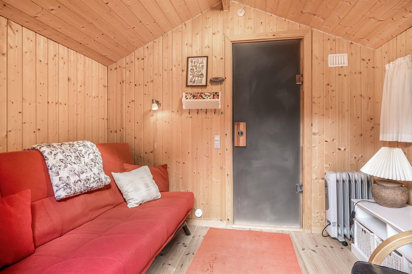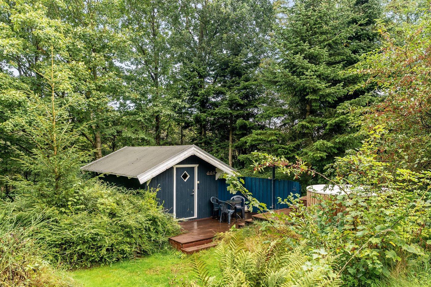 Ferieboligen er beliggende på en 2700 m² stor naturgrund. Der er 300 m til fjorden. Nærmeste forretning er beliggende i en afstand af 3000 m. Der er en golfbane i en afstand af 11000 m. Til ferieboligen hører åbent terrasseareal. Gynge. Sandkasse. Legetårn. Rutchebane. Bålsted. Udendørs sauna. Udendørs bruser. Grill til rådighed. Parkering ved ferieboligen.