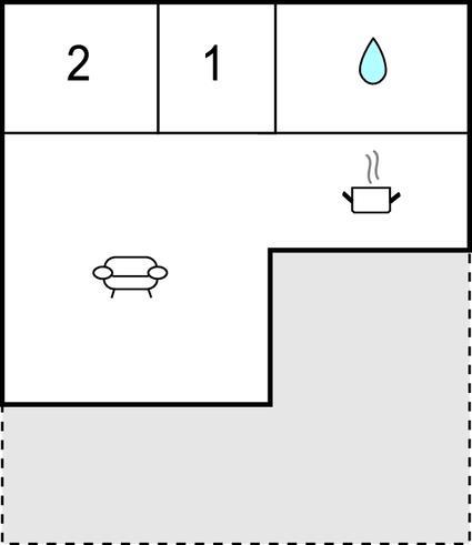 Opholdsstue/køkken - 2 Sovepladser. (Sofa, madras eller lignende).