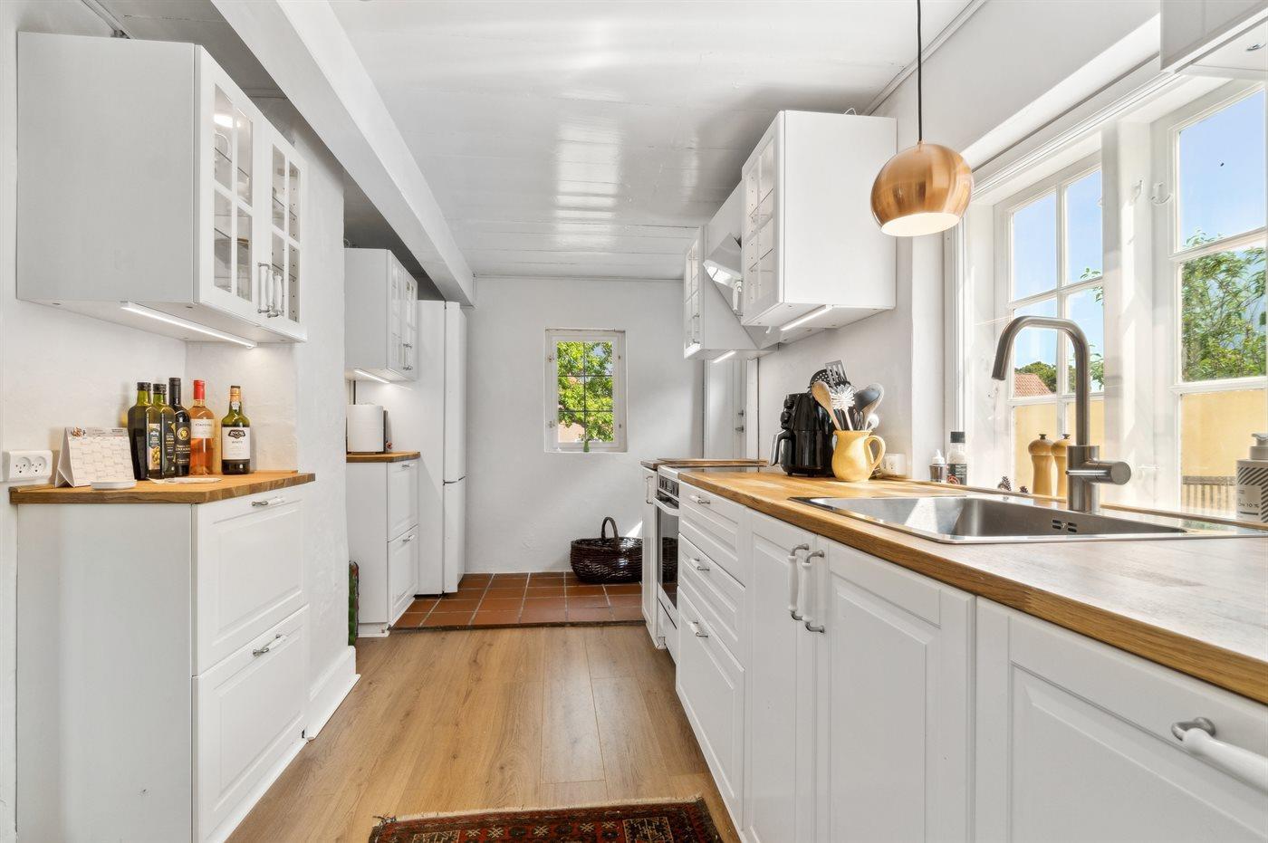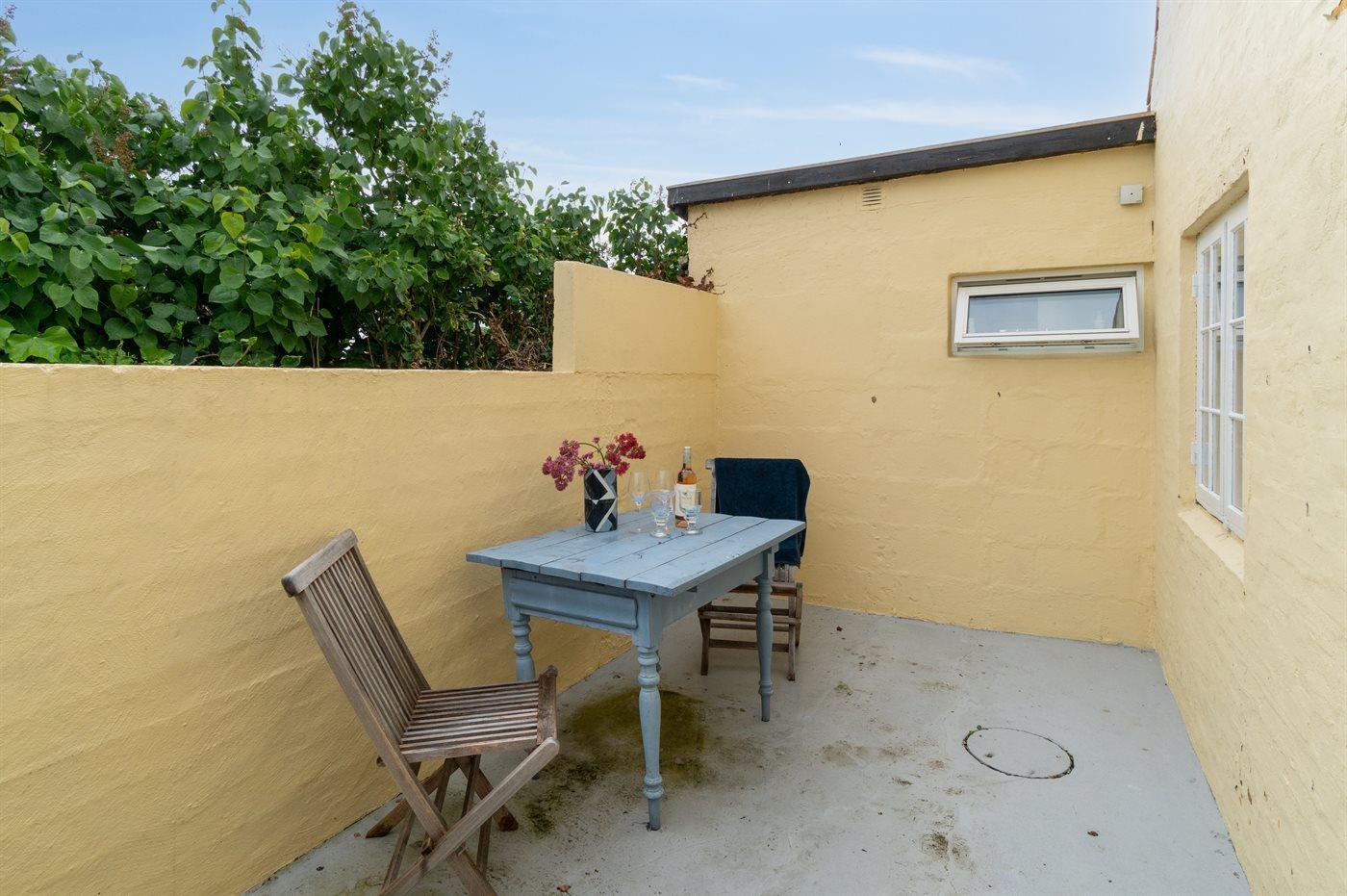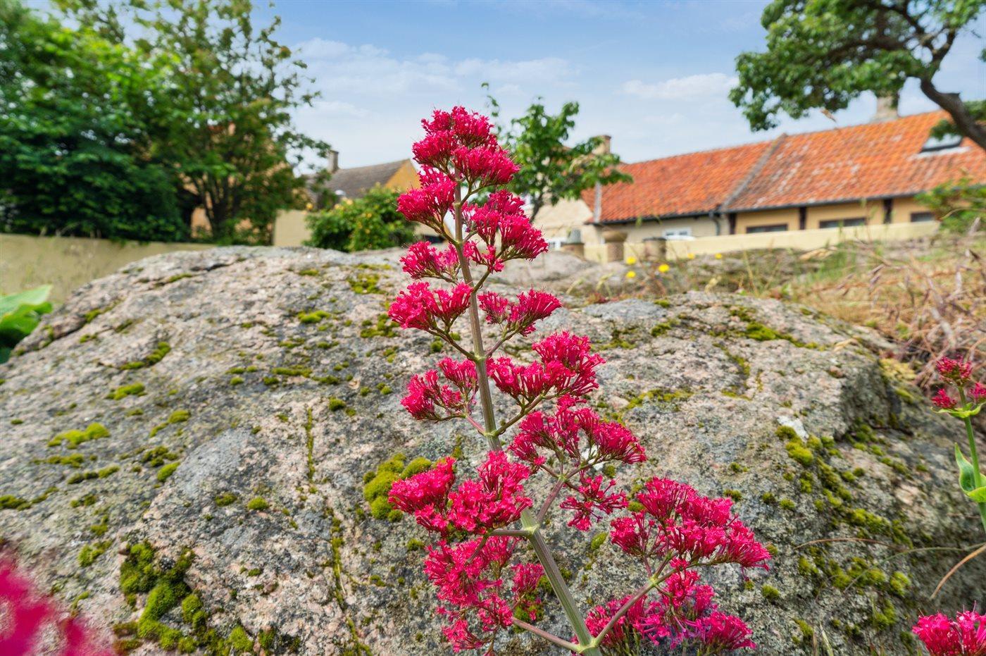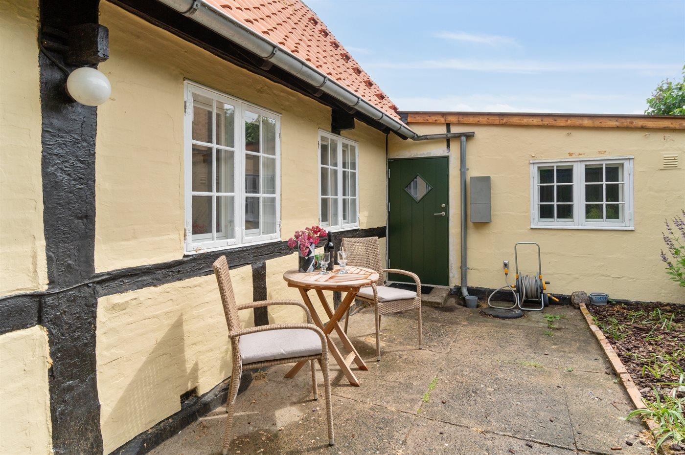 Rundt om huset er der en gammel have med meget store klippefremspring. Lukket solterrasse og hyggelig gård, hvor morgenkaffen kan nydes, når solen står op over Danmarks østligste købstad.