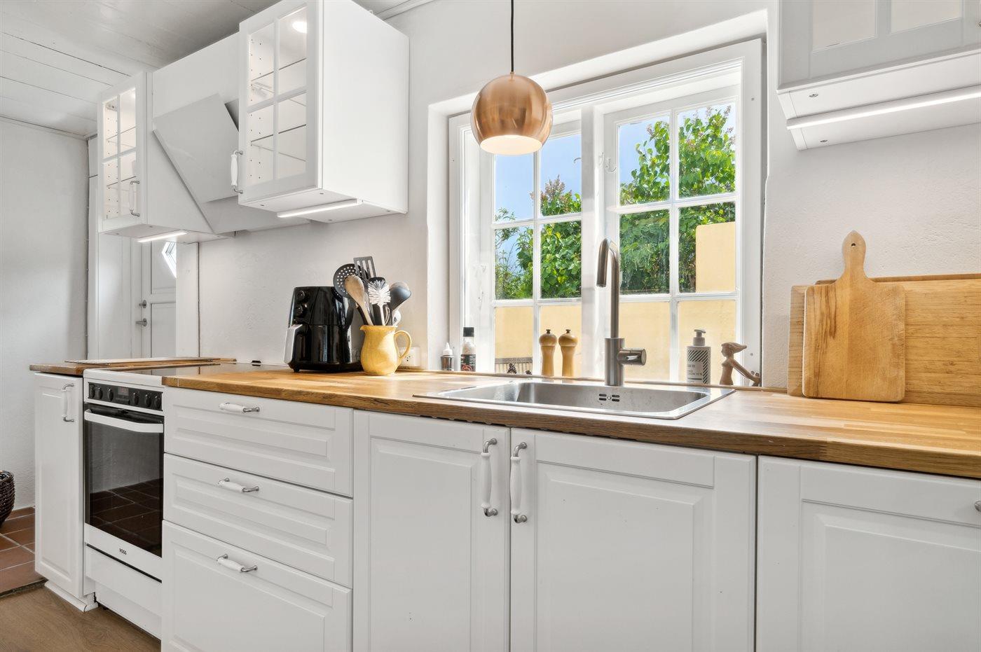 Køkkenet er udstyret med 1 køleskab. Der er 4 keramiske kogeplader, varmluftovn, Airfryer.