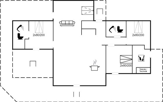Der er 2 badeværelser med bruseniche og 2 toiletter. Der er gulvvarme på 2 badeværelser.