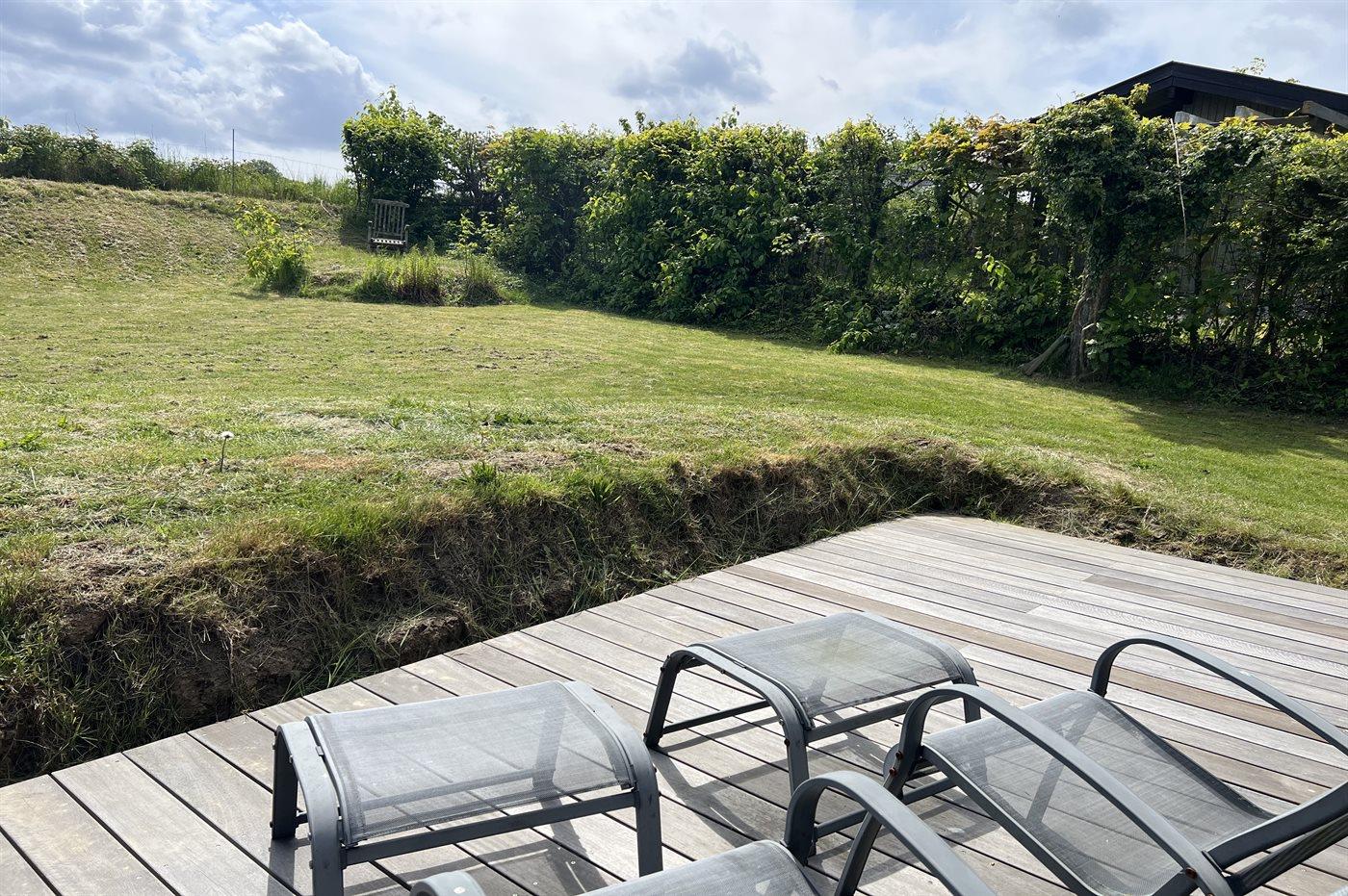 Ferieboligen er beliggende på en 953 m² stor havegrund. Der er 400 m til havet. Nærmeste forretning er beliggende i en afstand af 2500 m. Til ferieboligen hører åbent terrasseareal. Desuden er der overdækket terrasse. Udendørs bruser. Grill til rådighed. Der er carport til rådighed. Parkering ved ferieboligen.