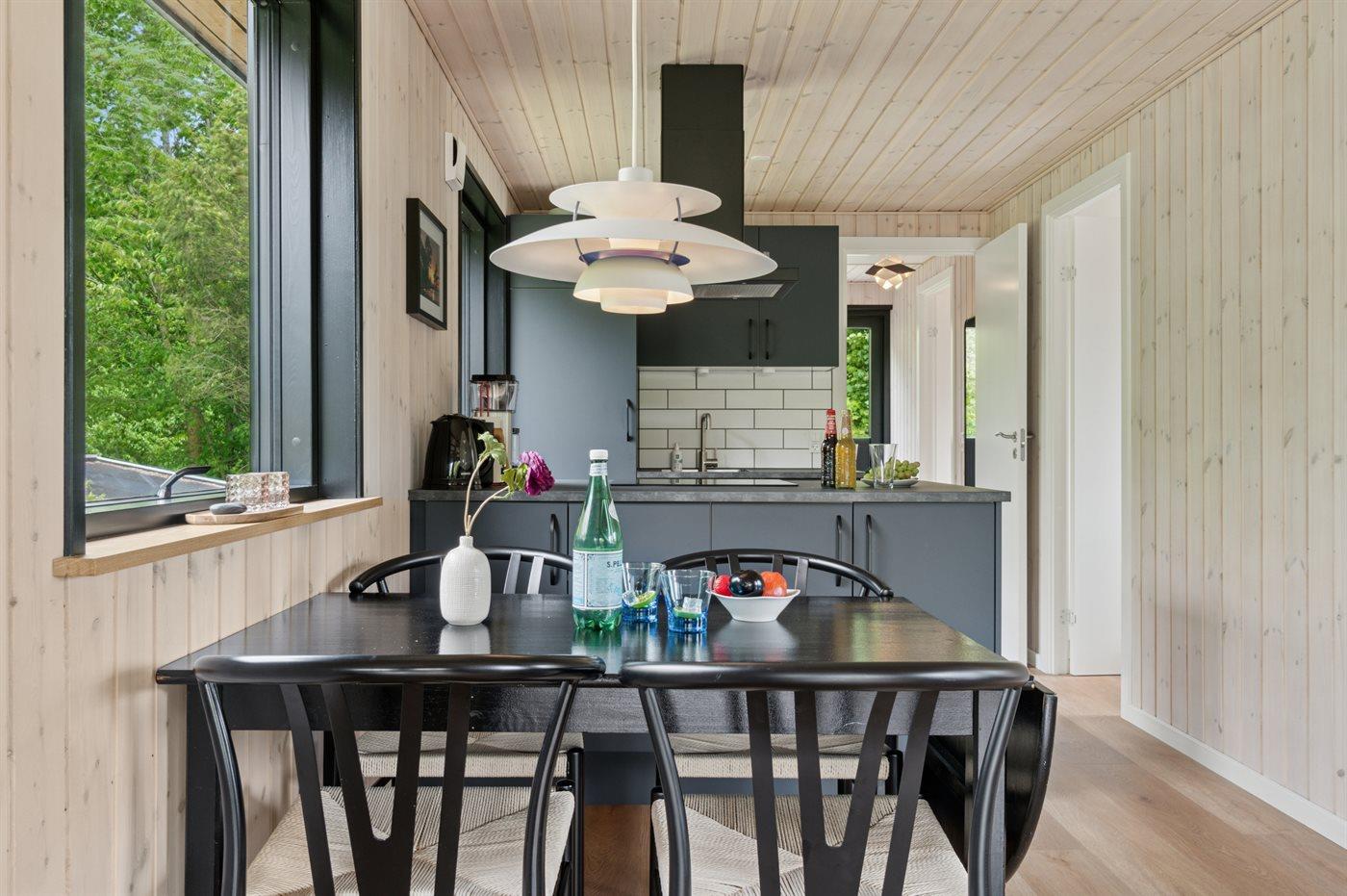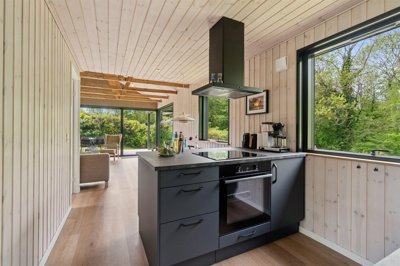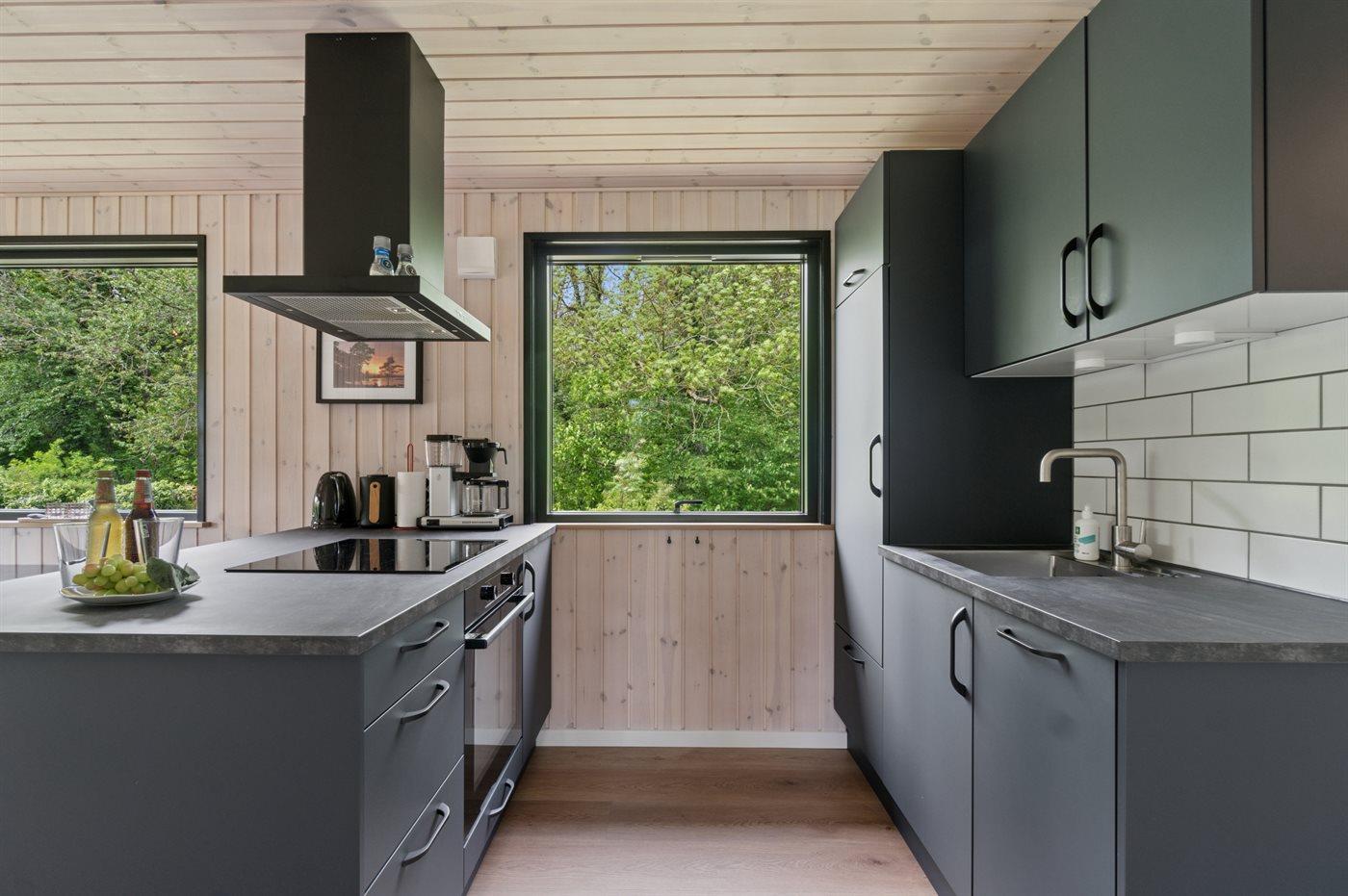Køkkenet er udstyret med 1 køleskab. Der er 4 induktionskogeplader, varmluftovn samt opvaskemaskine.