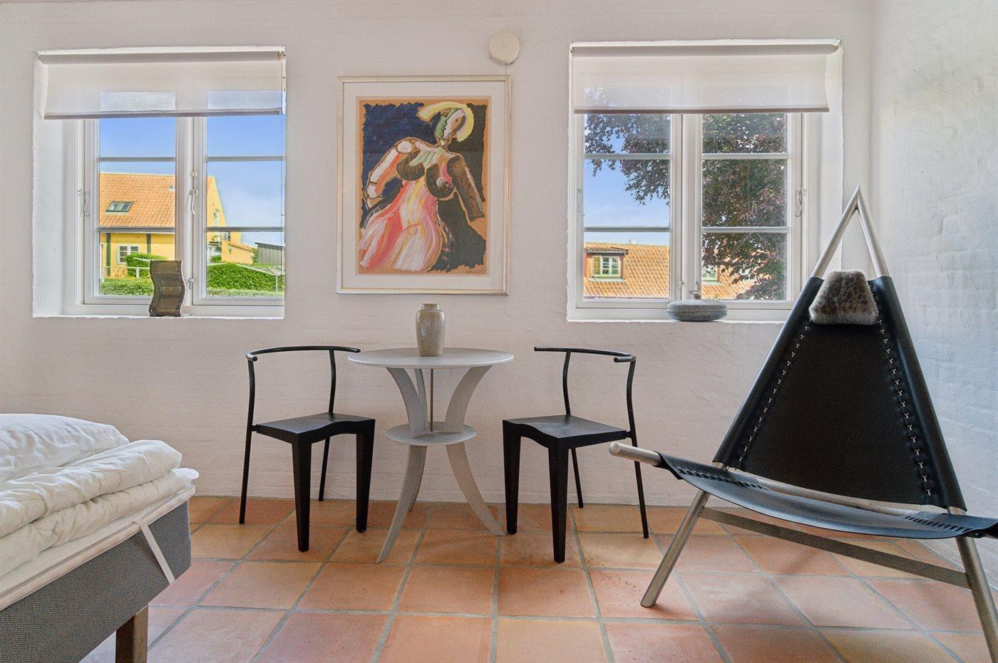 Stort arkitekttegnet byhus midt i Svaneke - gennemførte planløsninger - et lyst interiør med mange små detaljer, der er med til at give et indbydende indtryk af huset, som ligger med en kuperet havegrund. Haven er opdelt i to afdelinger, så man kan nyde sin egen terrasse med udkik ned over byen.