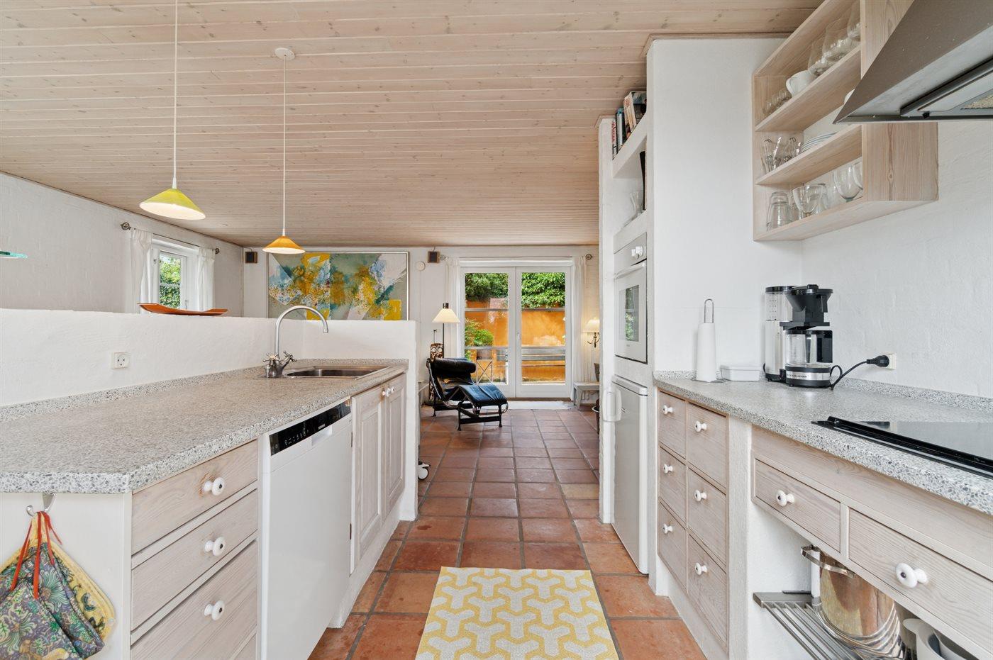 Køkkenet er udstyret med 1 køleskab. Der er 4 induktionskogeplader, varmluftovn samt opvaskemaskine.