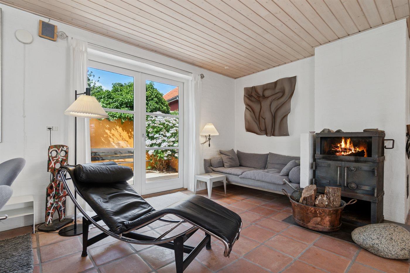 Stort arkitekttegnet byhus i Svaneke med moderne design og kuperet have, tæt på havet og byens charme.