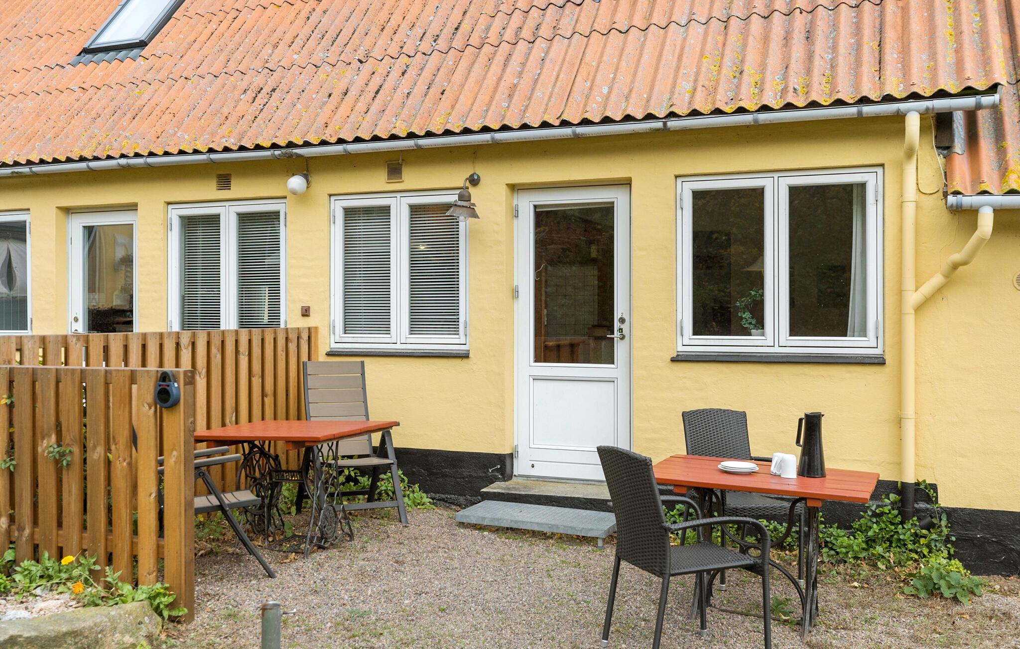 I denne hyggelige ferielejlighed, beliggende lidt syd for Svaneke på Bornholm, venter jer en fantastisk udsigt over havet samt en lys og venlig atmosfære, der er ideel til afslappende feriedage. Lejligheden ligger i stueetagen og tilbyder praktisk komfort samt en åben opholdsstue med sofahjørne, spisebord og køkken. Start dagen på den indbydende terrasse med udsigt til vandet, og nyd de fredelige omgivelser. Den rummelige fællesgrund giver masser af plads, og det nærliggende hav lægger op til rolige stunder og afslappende øjeblikke.