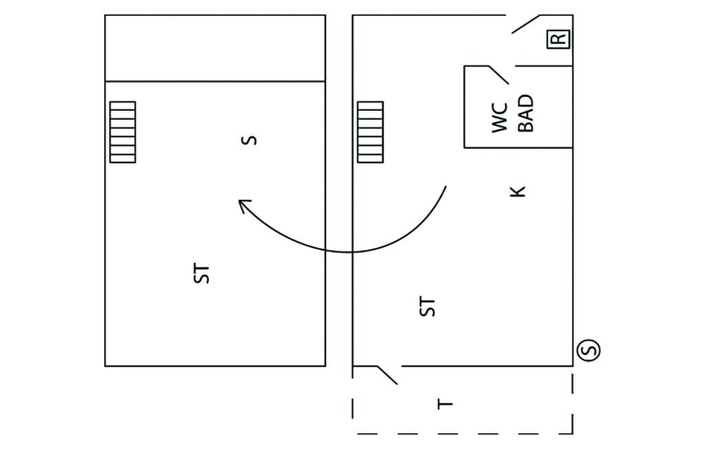 Bemærk: Højt stueplan. Bemærk yderligere, at alle sovepladser er samlet i samme soverum.