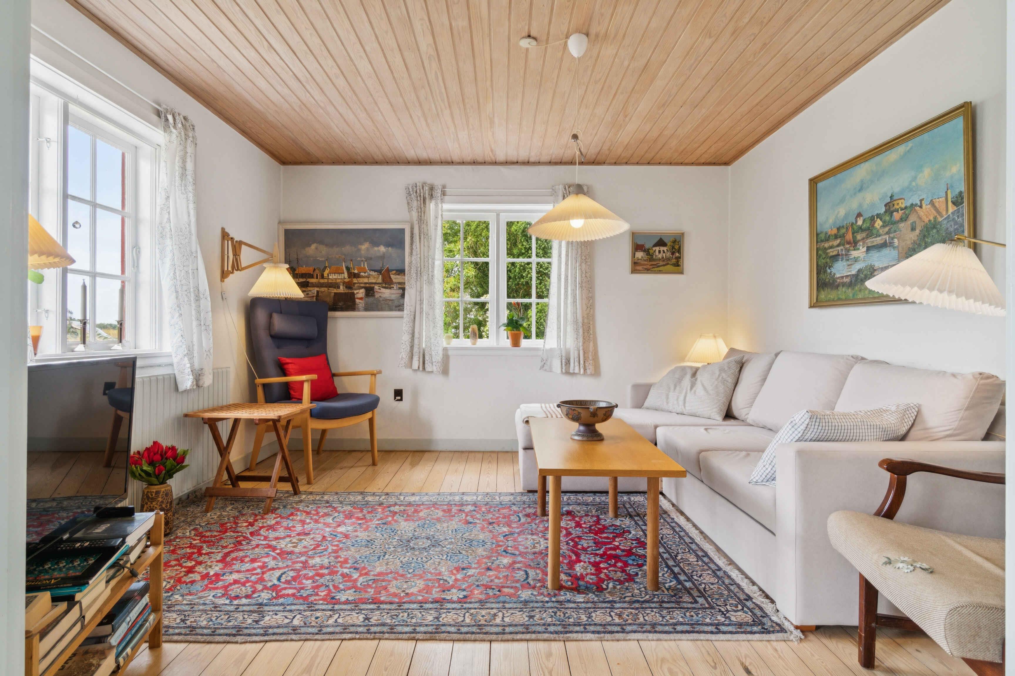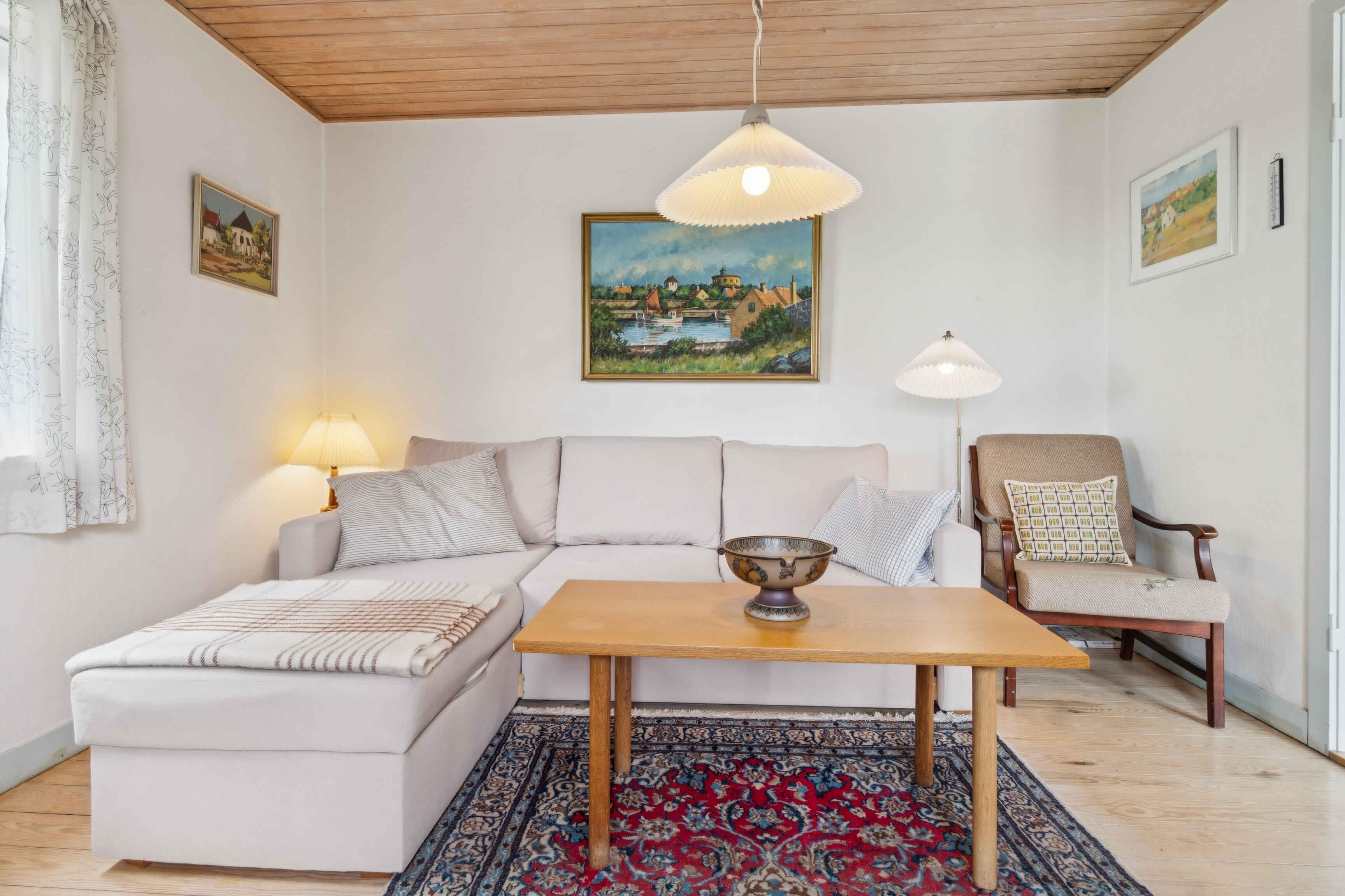 Rummeligt feriehus på 130 m² med 3 soveværelser, 6 sovepladser, stor terrasse og god parkering. Beliggende tæt på Svaneke, strand, natur og oplevelser – ideelt til familieferie.
