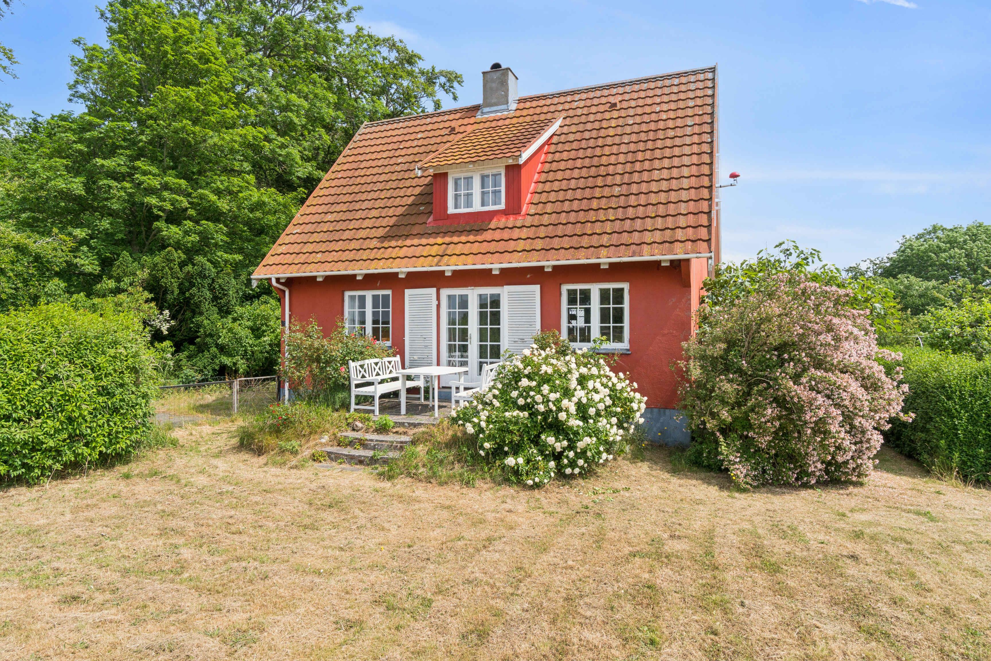 Rummeligt feriehus nær Svaneke med stor terrasse, parkering og tæt på strand, natur samt byens faciliteter.