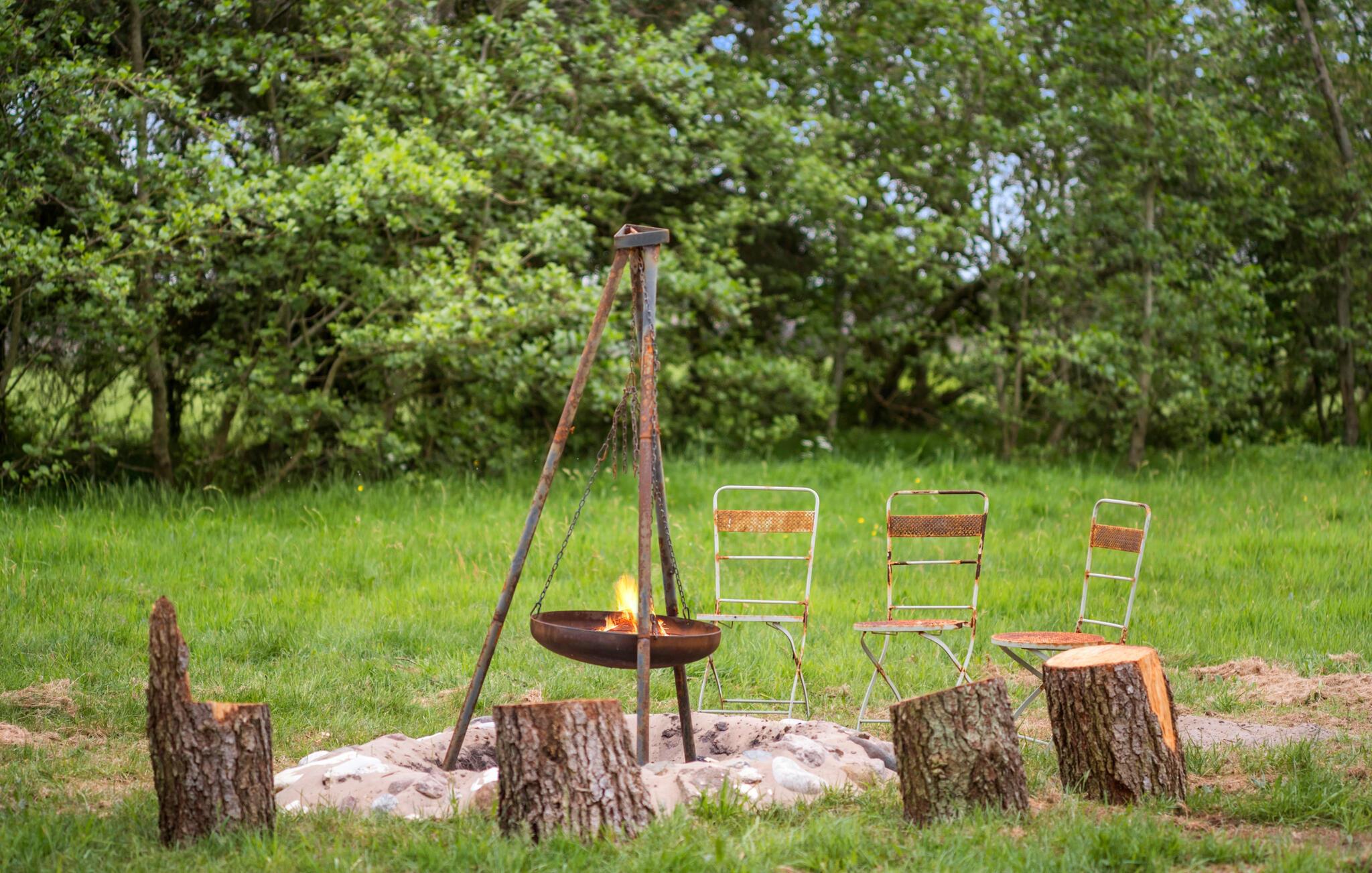 På de varme dage kan I nyde solen fra morgen til aften på den store, ugenerede grund. Her er der masser af plads og spændende kroge og hjørner, som børnene kan opdage, mens de voksne tager den lidt med ro med en god kop kaffe og et brætspil på terrassen. Tilbered lækre bøffer på grillen ud på aftenen og lad en smuk sommerdag gå på hæld i vildmarksbadet under stjernerne, mens I lægger planer for de kommende dage.