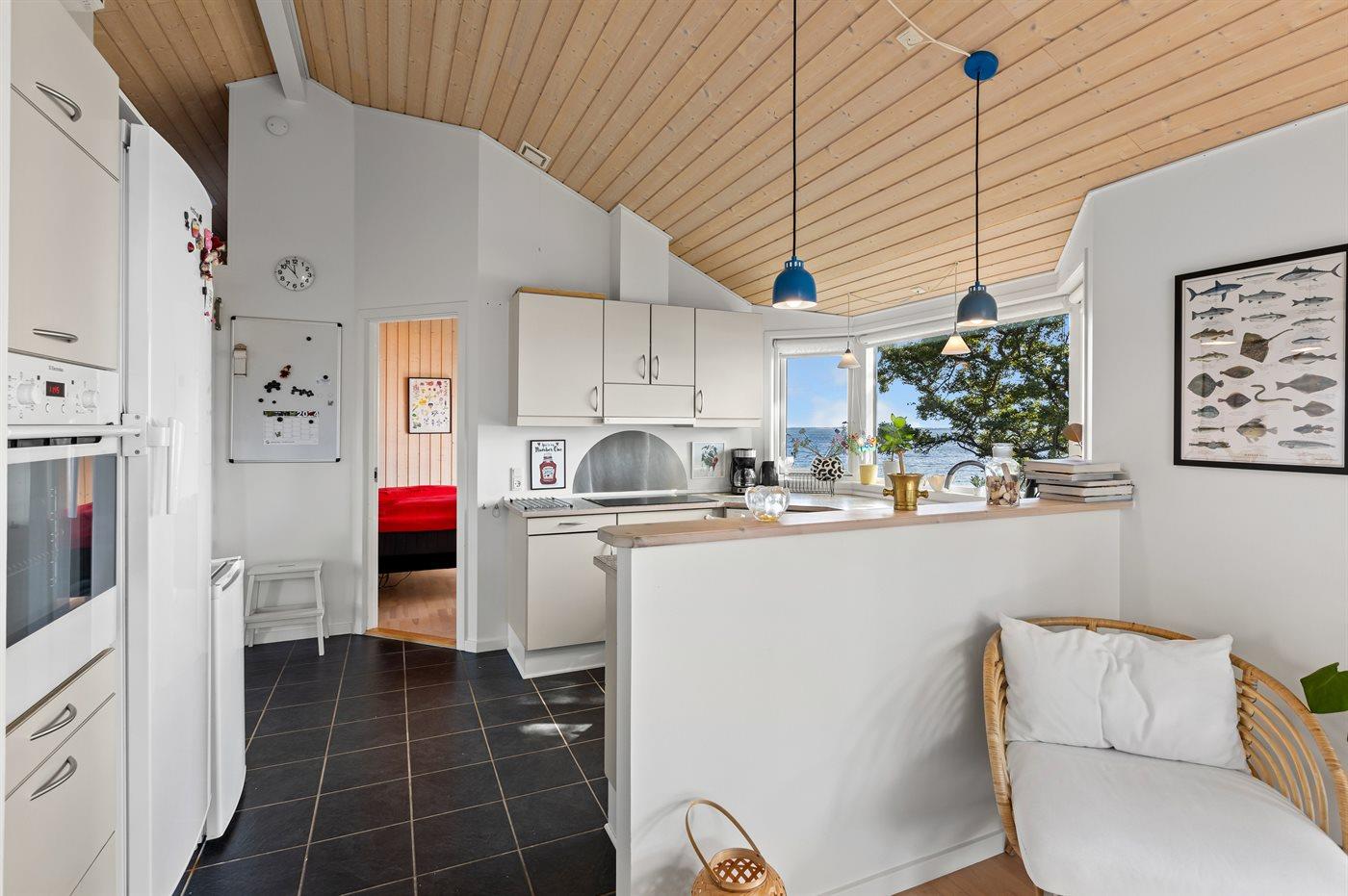 Køkkenet er udstyret med 1 køleskab. Der er 4 induktionskogeplader, varmluftovn, mikrobølgeovn samt opvaskemaskine.