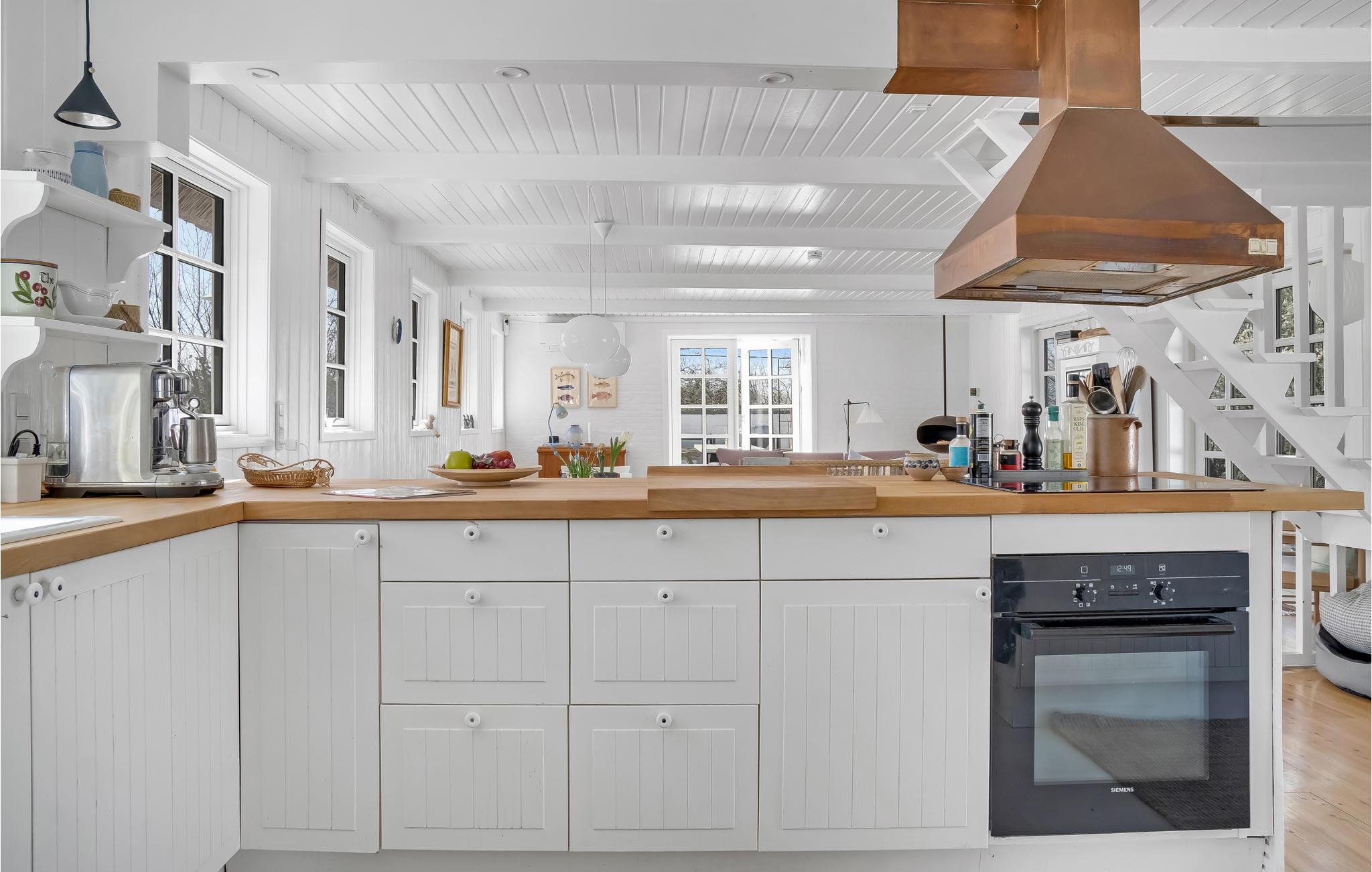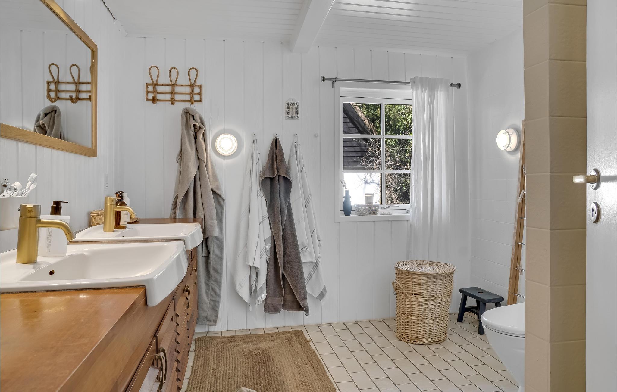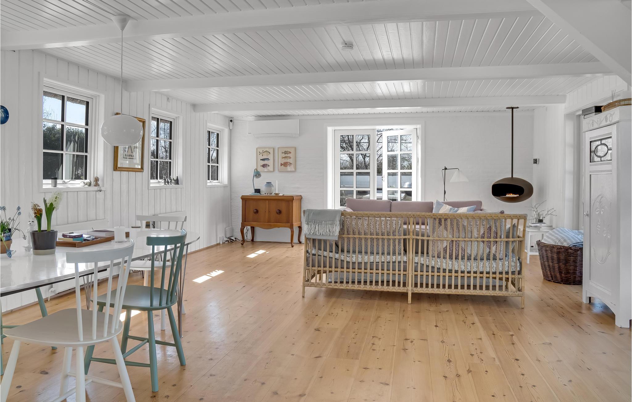 Alt ånder fred og idyl på denne maleriske beliggenhed i Stege Nor, hvor I finder dette henrivende landhus med stråtækt tag. Her har I de perfekte rammer til at holde, hvis I kan lide at bade og og fiske. Indendørs er boligen lys, lækker og komfortabel, så roen indfinder sig automatisk. Efter en lang dag med strandliv og spændende udflugter kan I sætte jer til rette med en god film eller spille brætspil.