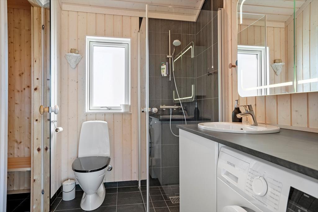 Her træder I ind i et nyt hus, hvor køkken og stue er ud i et. Her kan I være sammen, imens I laver mad og børnene måske tegner eller spiller spil ved spisebordet. I stuen kan I sidde i sofaerne og hygge, alt imens I planlægger næste dags oplevelser. Her er streaming TV og Wi-Fi til jeres teenager og huset har 3 gode soveværelser, et med dobbeltseng og et med 2 køjesenge og et med to enkeltsenge. Så her er plads til jer alle og mulighed for at trække sig tilbage og læse en god bog eller tage en lur. Huset har et dejligt badeværelse med toilet, håndvask og bruseniche, samt vaskemaskine og ikke mindst en sauna.