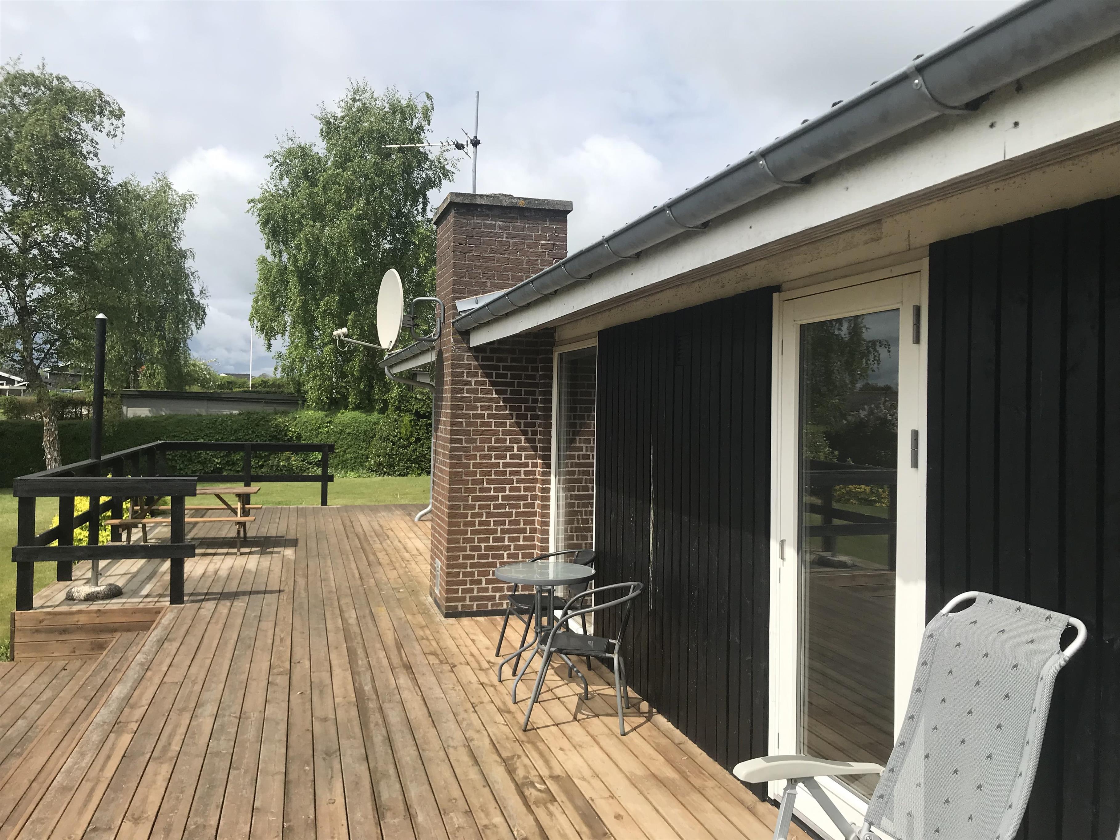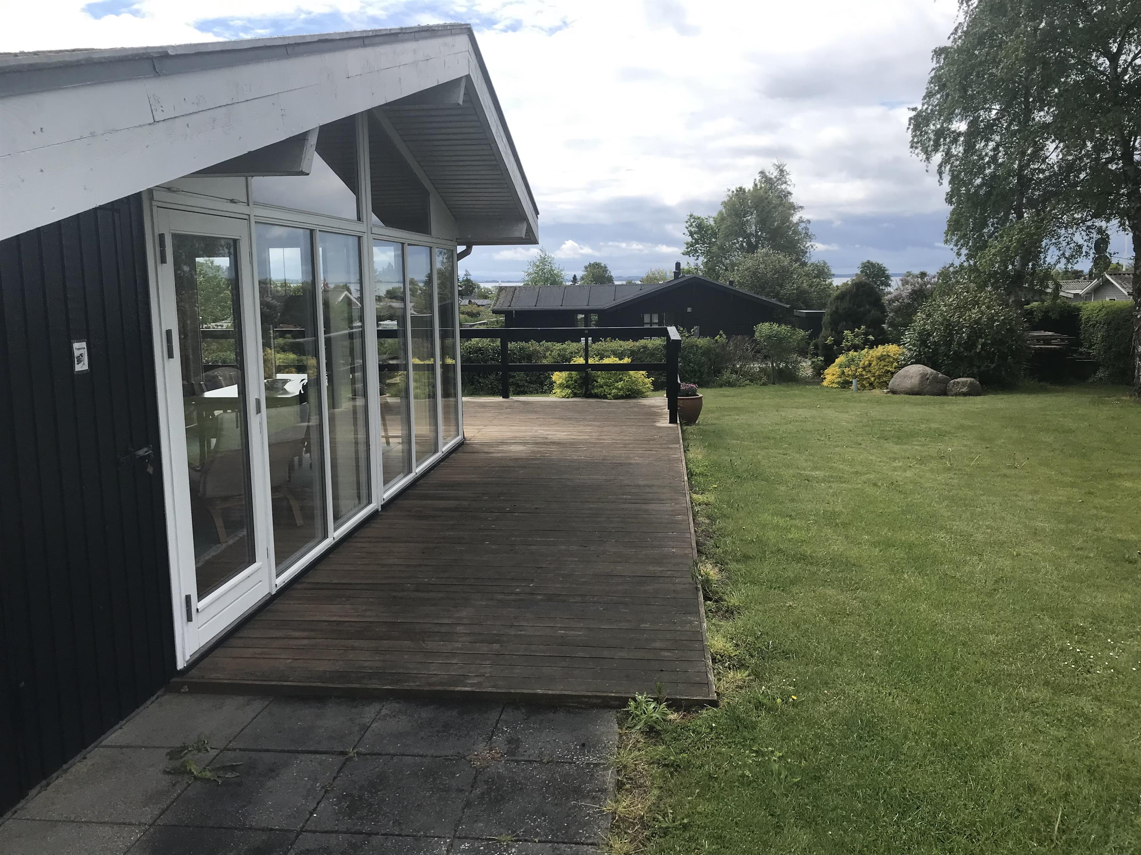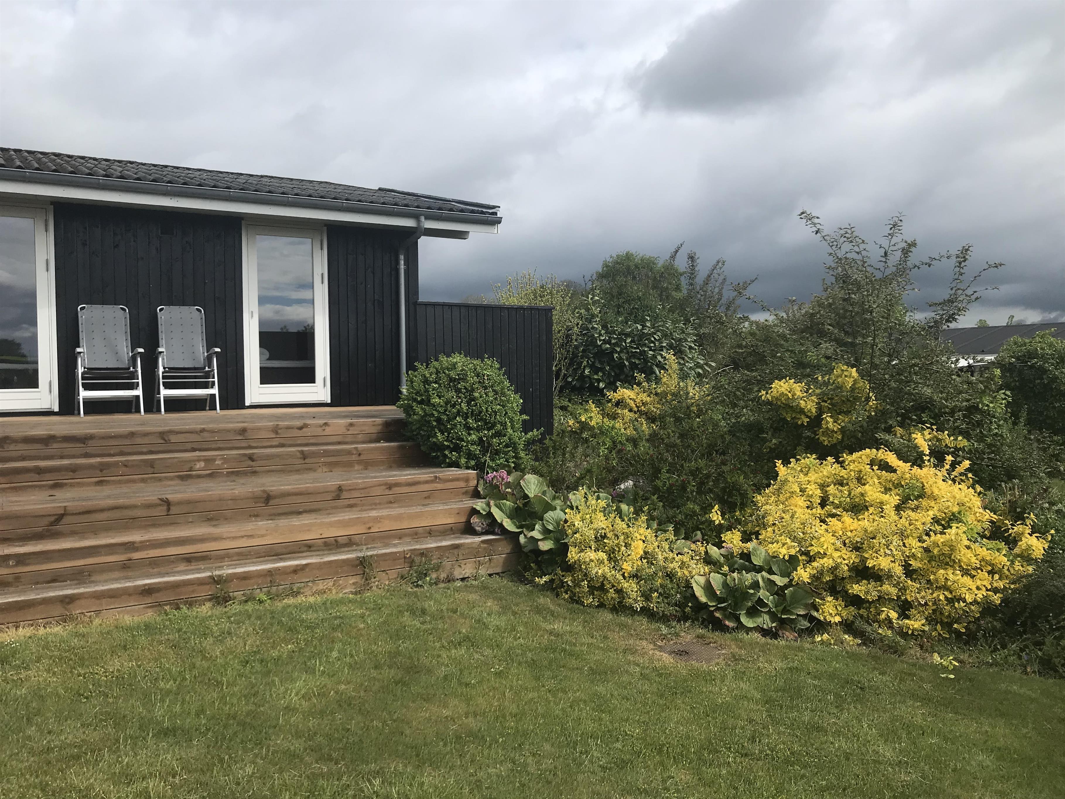 Dejligt grund med flere terrasser og plads til at røre sig. Fra den store terrasse er der en skøn udsigt over både vandet og grønne områder. Huset ligger lidt højt, og der er derfor en dejlig fornemmelse af vidde og plads, når man er på terrassen. Her er havemøbler, liggestole og grill samt p-plads på grunden. I redskabsrummet er der et ekstra køle-/fryseskab, hvis I køber stort ind.