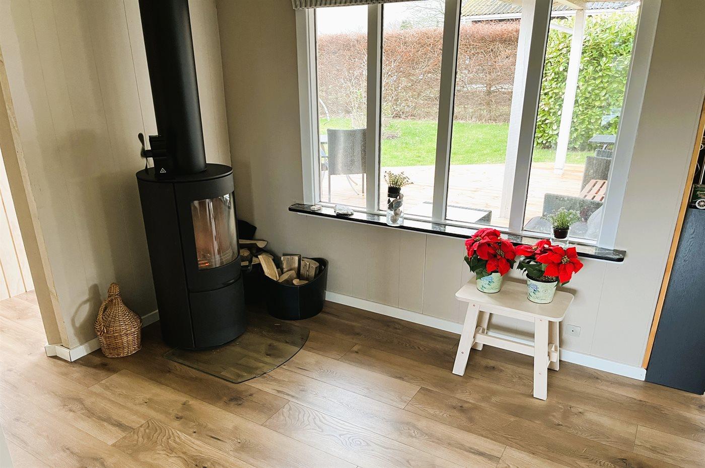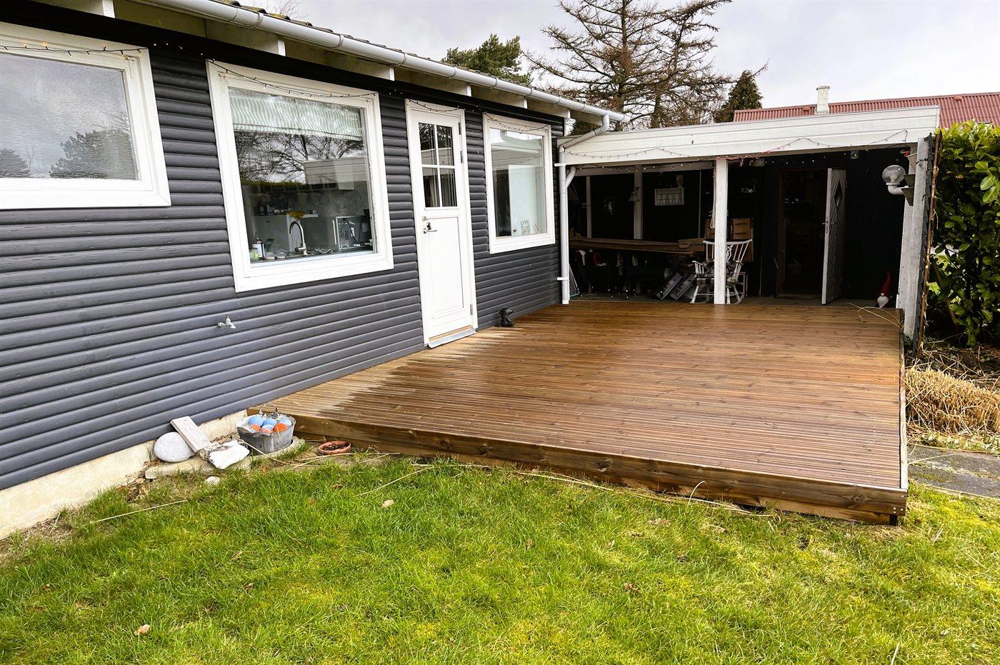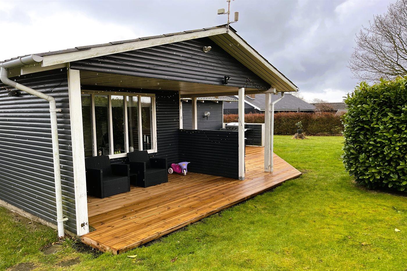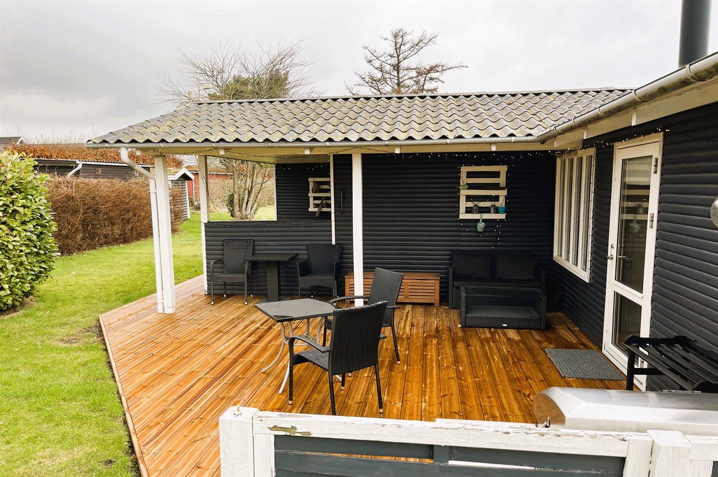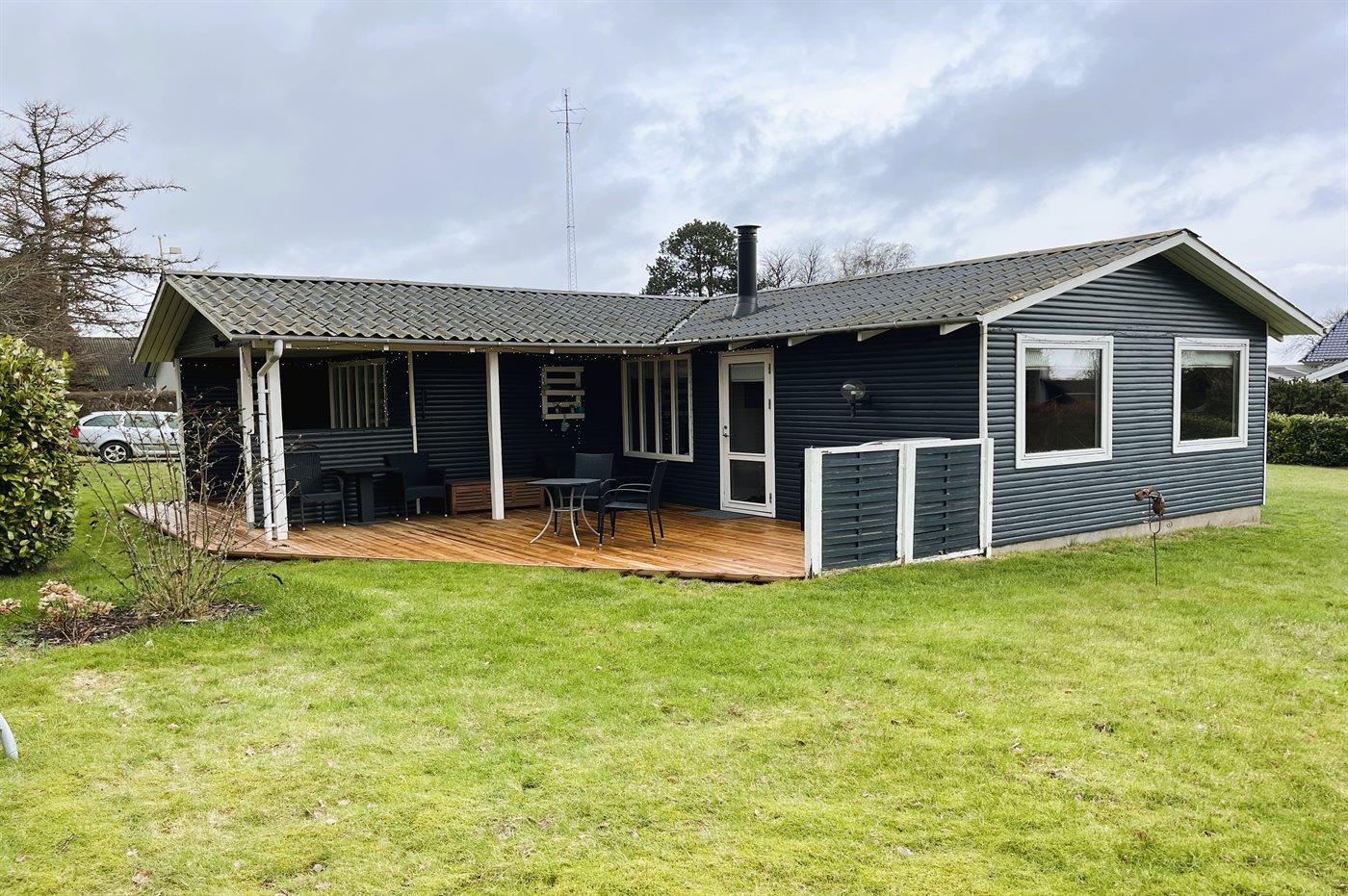 Dejligt og hyggeligt sommerhus med gode terrasser omkring huset, hvoraf flere er overdækket.