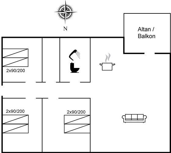 Der er i alt 3 soveværelser. Sovepladserne fordeler sig på: 6 sovepladser i dobbeltsenge. Derudover er der 1 stk. barneseng.