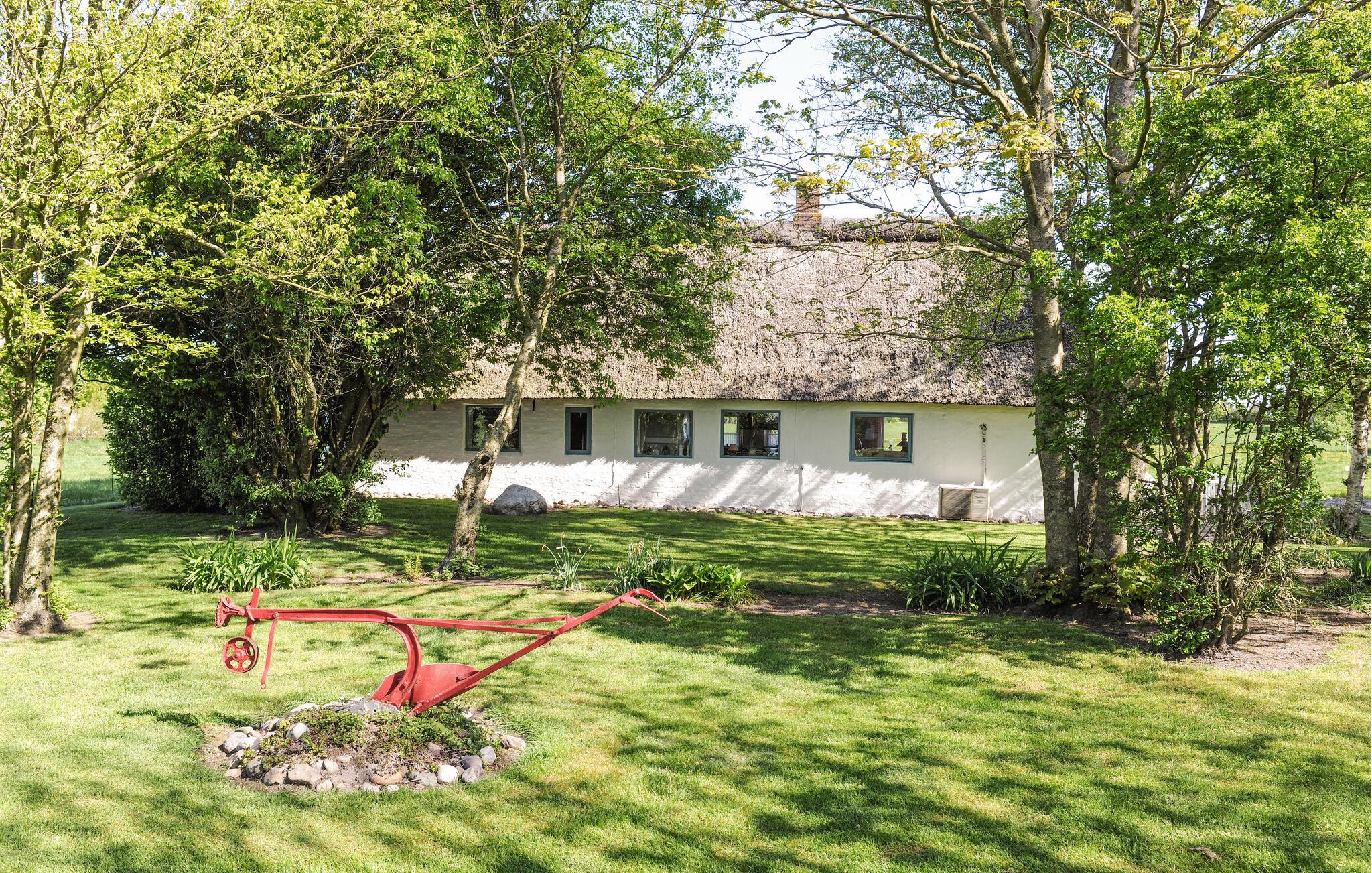 Oplev afslappende dage i et gammelt stråtagshus omgivet af enge og træer.