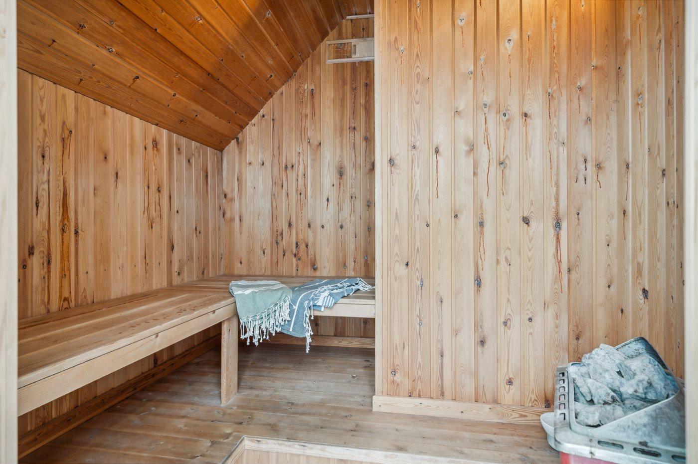 Der er 1 badeværelse med bruseniche og 1 toilet. I saunaen er der mulighed for afslapning.