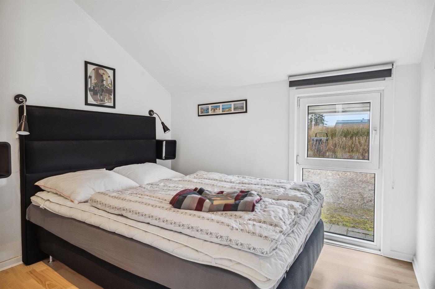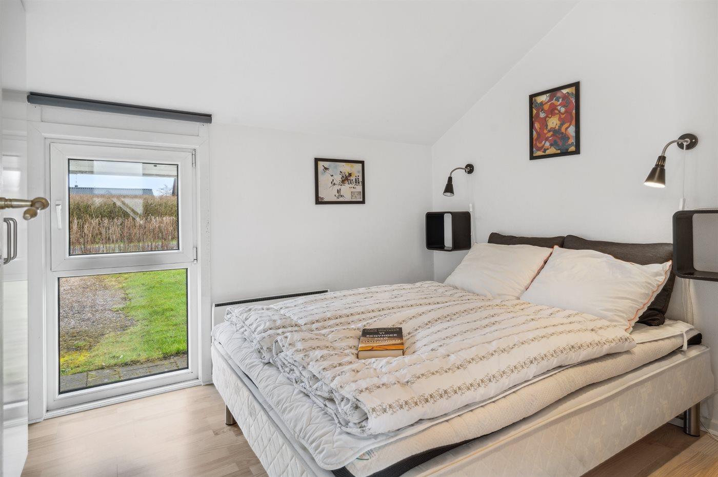 Der er i alt 2 soveværelser. Sovepladserne fordeler sig på: 4 sovepladser i dobbeltsenge. 2 sovepladser på madrasser. 2 af disse sovepladser befinder sig på husets hems. Derudover er der 2 stk. barnesenge.