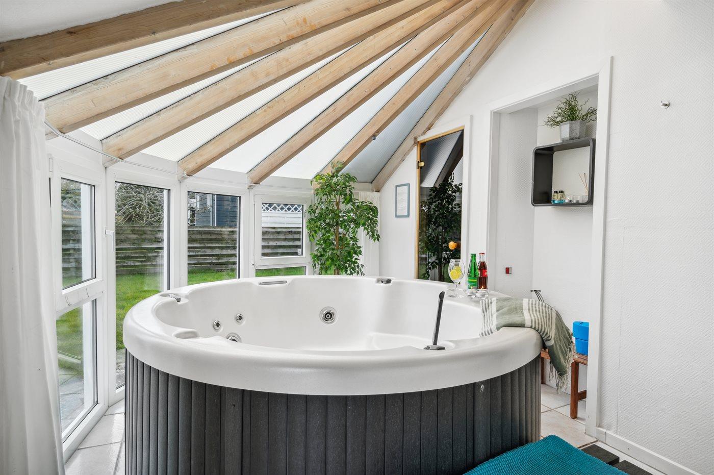 I den indendørs standvandsspa er der plads til 5 personer.