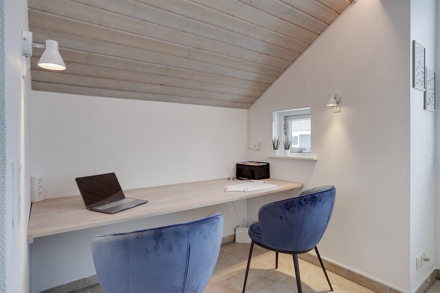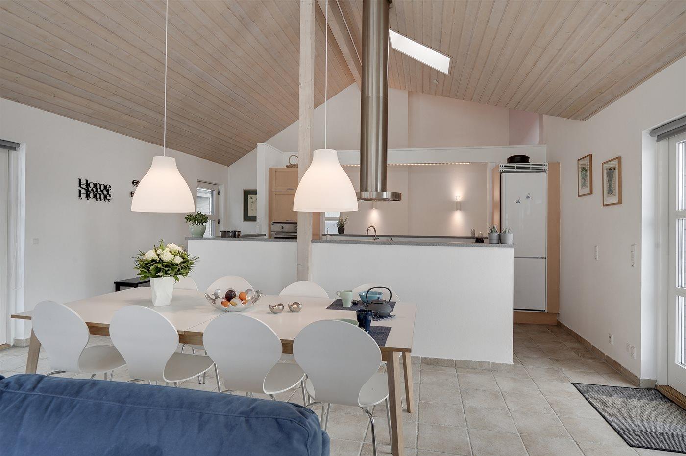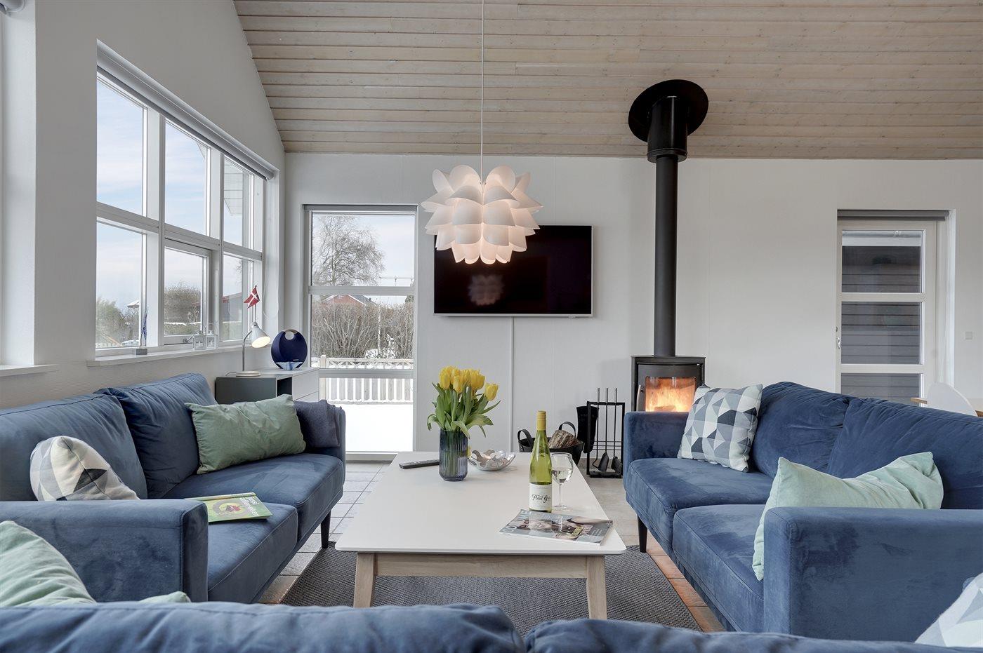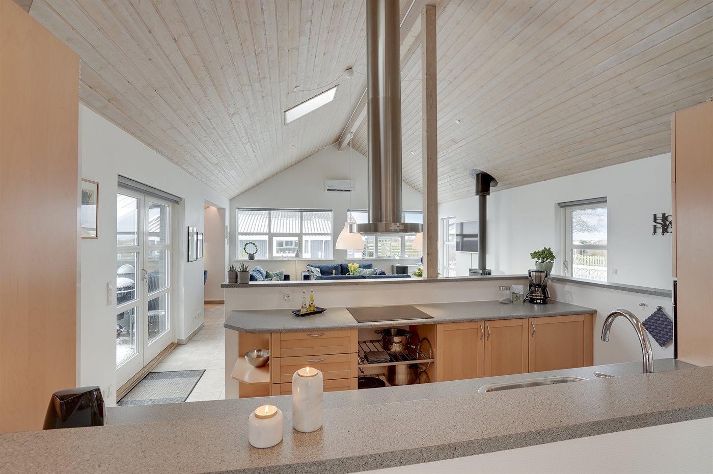 Huset er lyst og rummeligt - og blandt de få i området, som tilbyder 4 soveværelser - alle med dobbeltsenge og skabsplads. Det ene værelse er beliggende i annekset med eget toilet og bryggers - blot et enkelt skridt fra hovedhuset. Husets store badeværelse indeholder bruser samt et 2 personers spabad. På husets hems findes en fin hyggeafdeling med stor fladskærm, FATBOY sækkestole og mulighed for at opkoble egen Nintendo, etc. Husets stue, hvorfra der er udgang til den syd-/vestvendte terrasse, ligger i forbindelse med spiseafdelingen og det åbne køkken. Møblerne er moderne og behagelige. I stuen er yderligere indrettet en lille alkove, hvorfra det er muligt at arbejde - eller ungerne kan sidde og tegne. I stuen findes endnu et stort smart TV med danske, nordiske og tyske tv-kanaler, Harman Kardon bluetooth højttaler og pejs. Huset har lynhurtigt fibernet, og er desuden udstyret med varmepumpe/aircondition, således at det kan bruges året rundt. Der er terrasser/hyggekroge mod vest, øst og syd/vest. Huset er moderniseret i efteråret 2020.