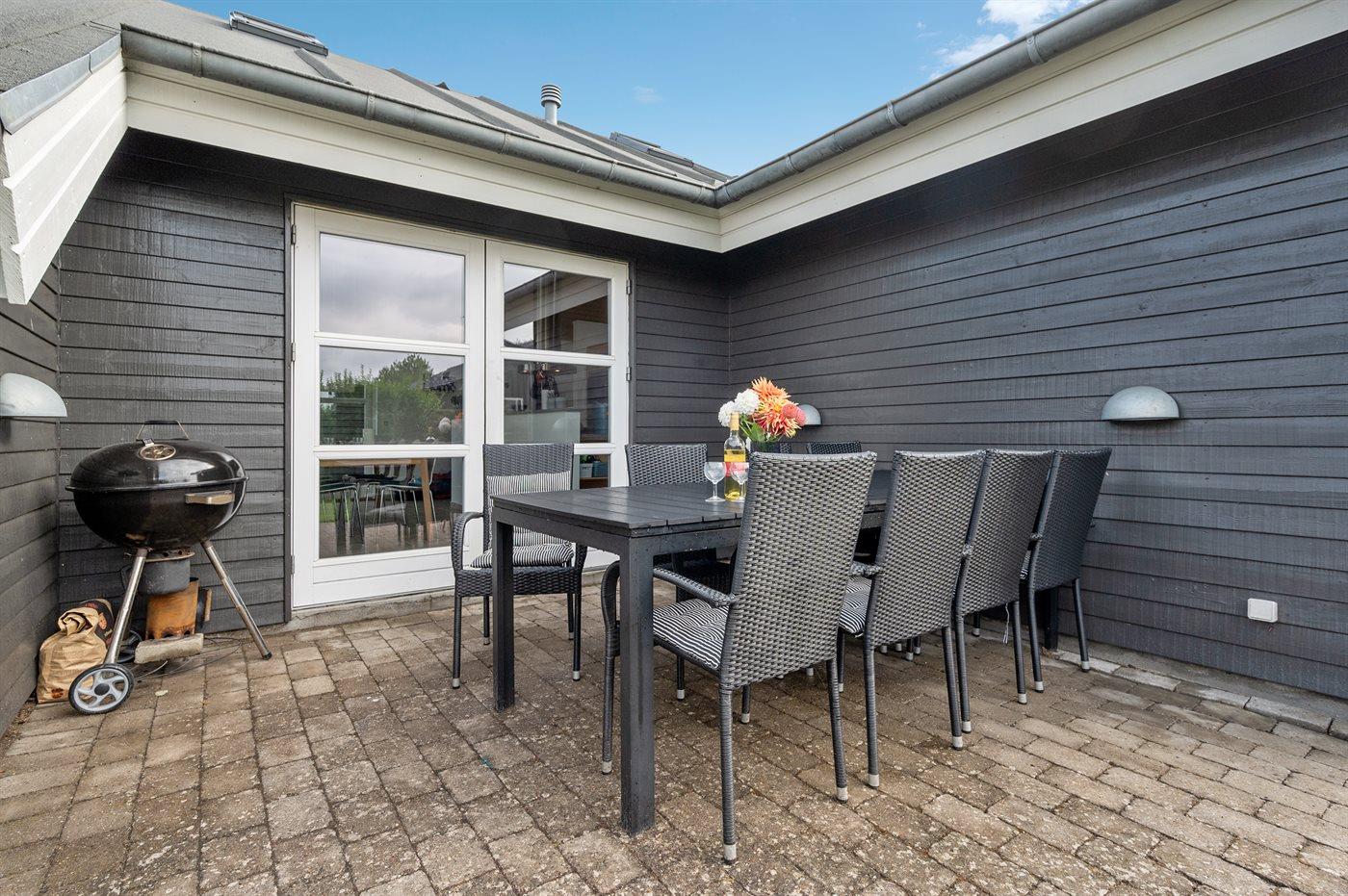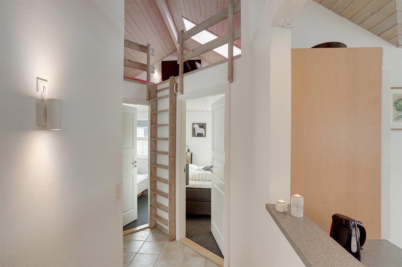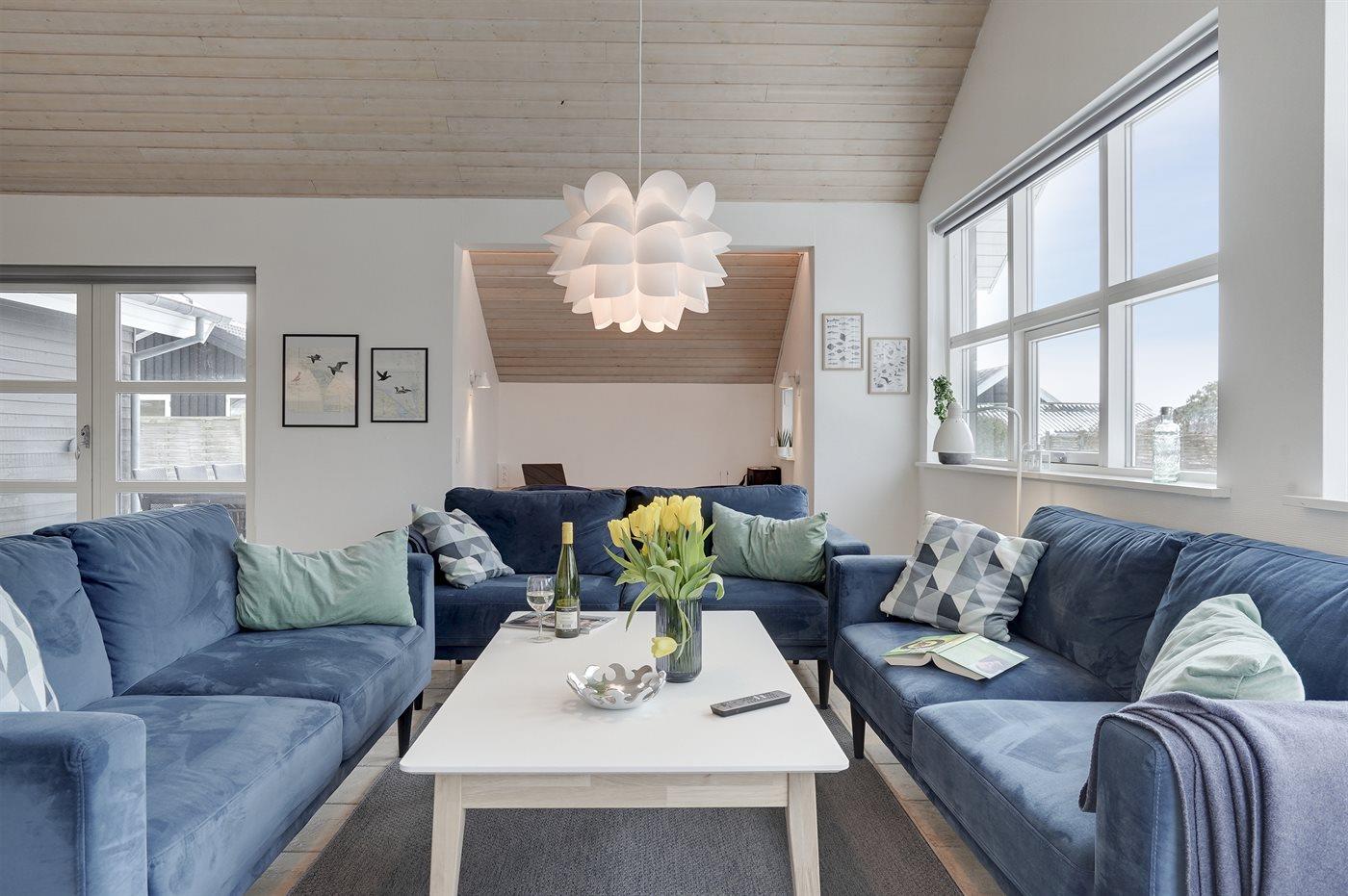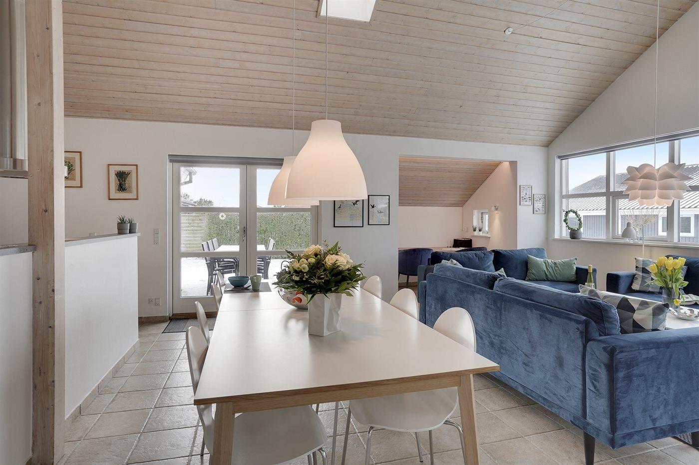 Huset er lyst og rummeligt - og blandt de få i området, som tilbyder 4 soveværelser - alle med dobbeltsenge og skabsplads. Det ene værelse er beliggende i annekset med eget toilet og bryggers - blot et enkelt skridt fra hovedhuset. Husets store badeværelse indeholder bruser samt et 2 personers spabad. På husets hems findes en fin hyggeafdeling med stor fladskærm, FATBOY sækkestole og mulighed for at opkoble egen Nintendo, etc. Husets stue, hvorfra der er udgang til den syd-/vestvendte terrasse, ligger i forbindelse med spiseafdelingen og det åbne køkken. Møblerne er moderne og behagelige. I stuen er yderligere indrettet en lille alkove, hvorfra det er muligt at arbejde - eller ungerne kan sidde og tegne. I stuen findes endnu et stort smart TV med danske, nordiske og tyske tv-kanaler, Harman Kardon bluetooth højttaler og pejs. Huset har lynhurtigt fibernet, og er desuden udstyret med varmepumpe/aircondition, således at det kan bruges året rundt. Der er terrasser/hyggekroge mod vest, øst og syd/vest. Huset er moderniseret i efteråret 2020.