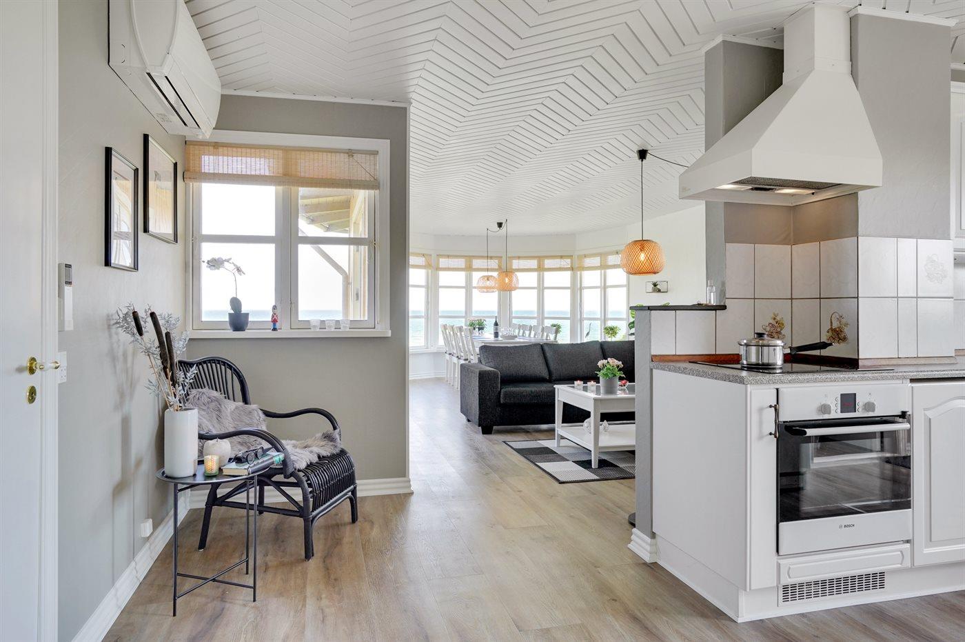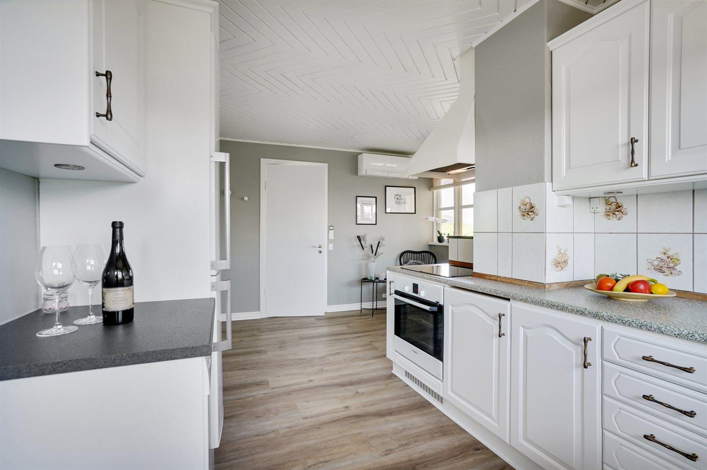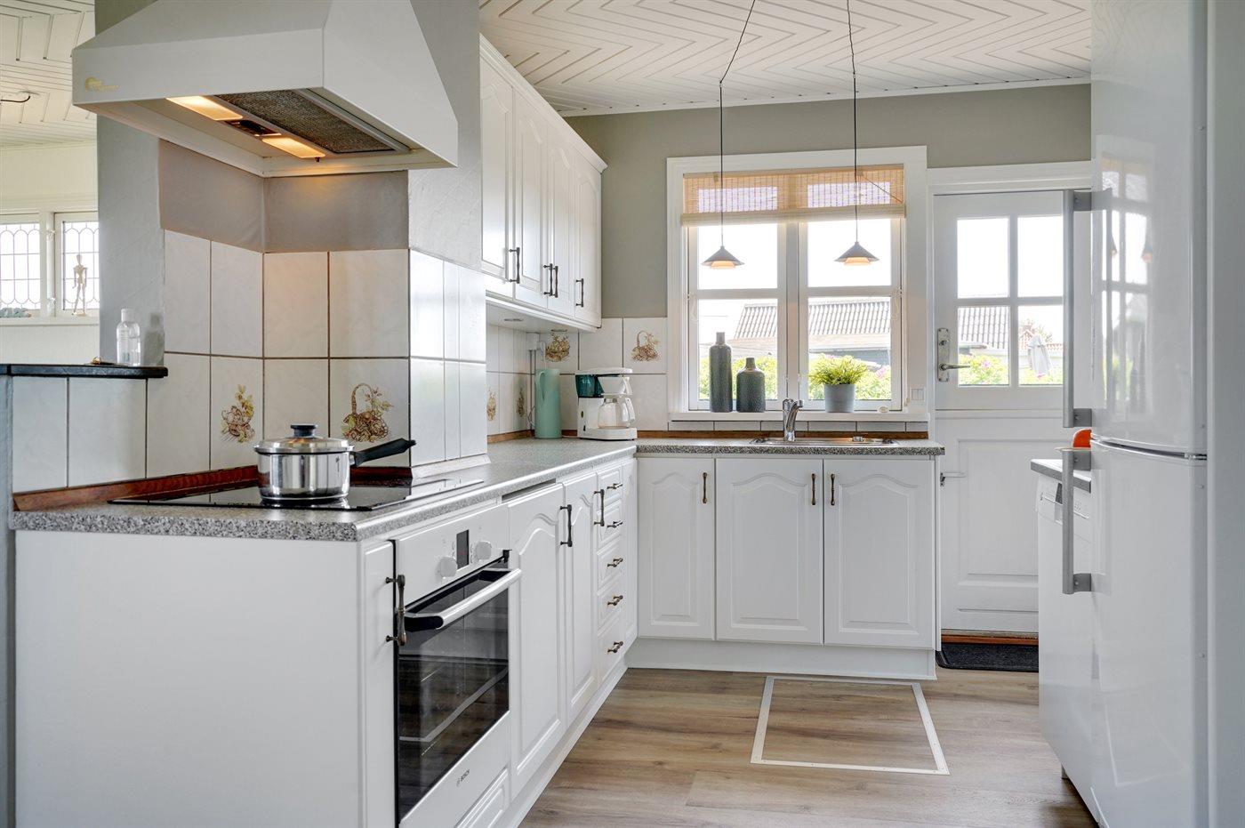 Køkkenet er udstyret med 1 køleskab. Der er 4 keramiske kogeplader, varmluftovn samt opvaskemaskine.