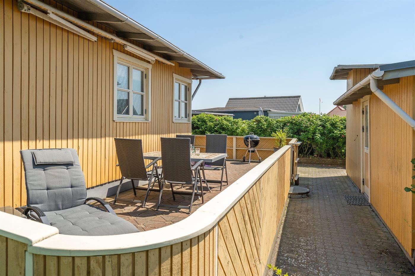Ferieboligen er beliggende på en 1242 m² stor havegrund. Der er 5 m til havet. Nærmeste forretning er beliggende i en afstand af 2500 m. Til ferieboligen hører 70 m² terrasseareal. Der er redskabsrum. Grill til rådighed. Parkering ved ferieboligen.
