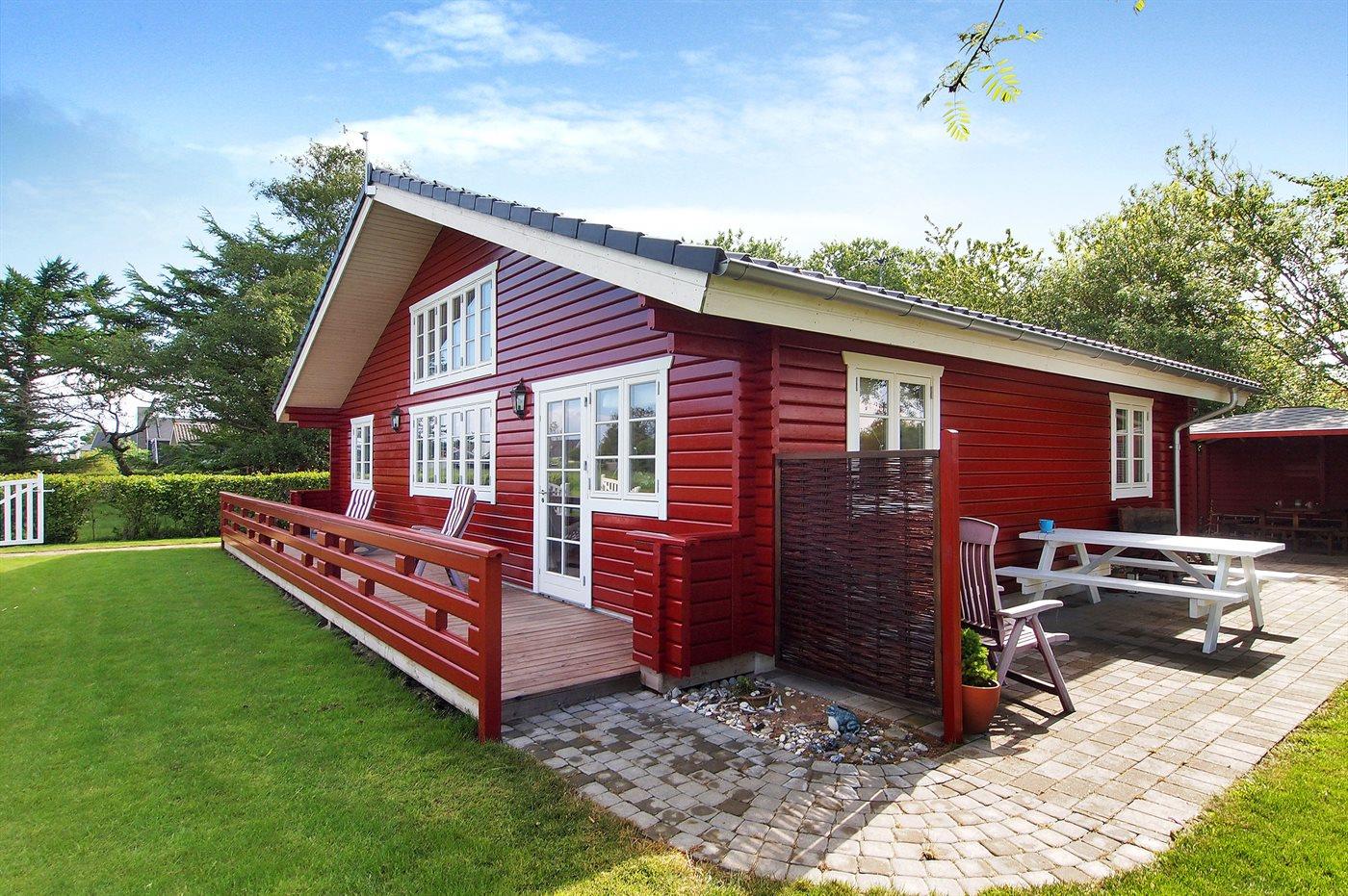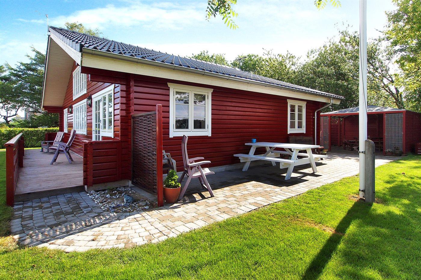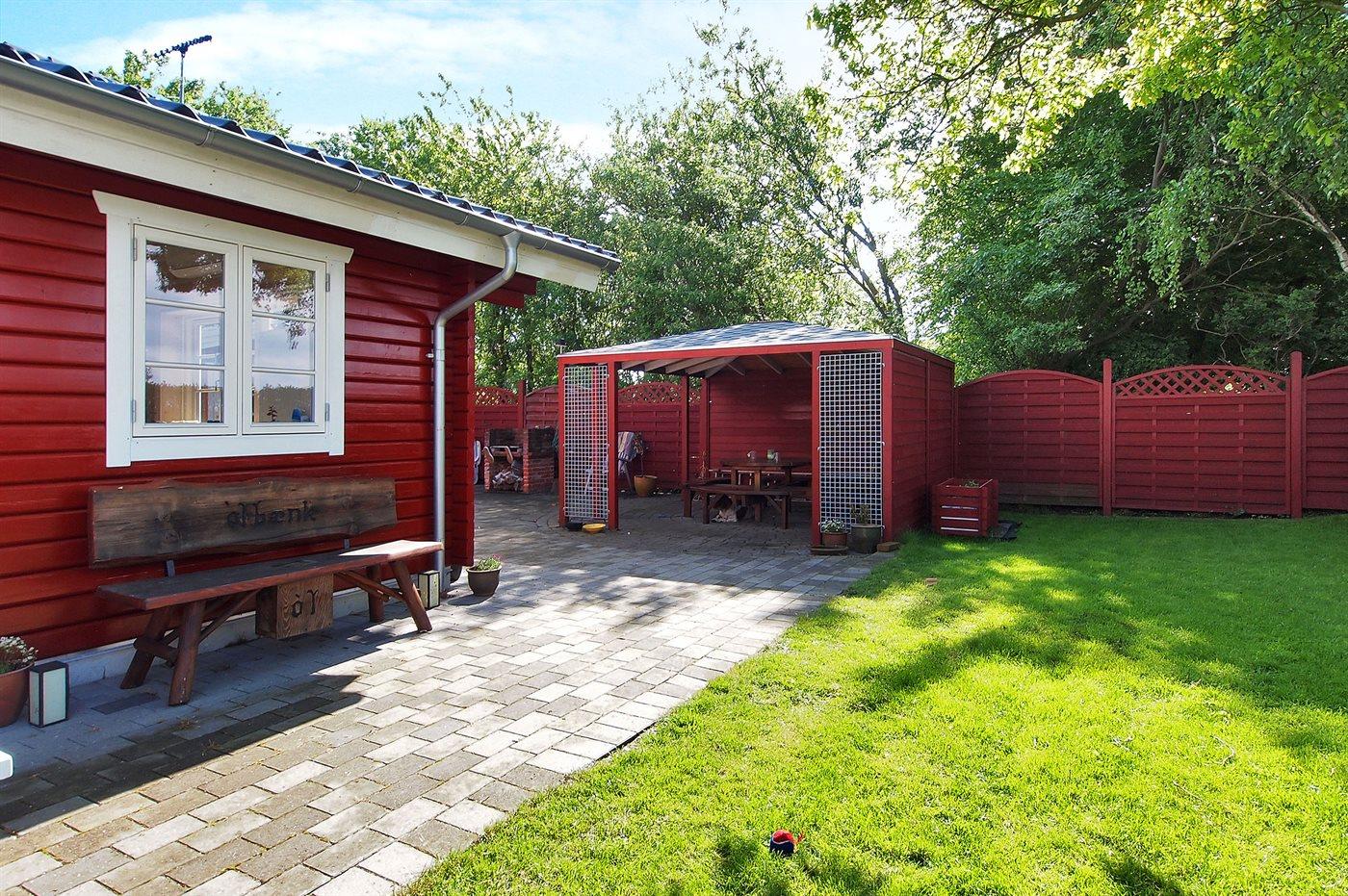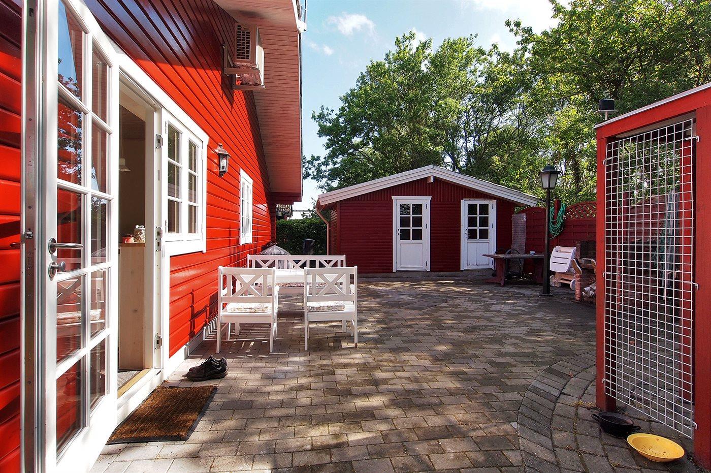 Ferieboligen er beliggende på en 460 m² stor havegrund. Grunden er indhegnet. Der er 100 m til havet. Nærmeste forretning er beliggende i en afstand af 2600 m. Til ferieboligen hører 160 m² terrasseareal. Desuden er der 16 m² overdækket terrasse. Grill til rådighed.