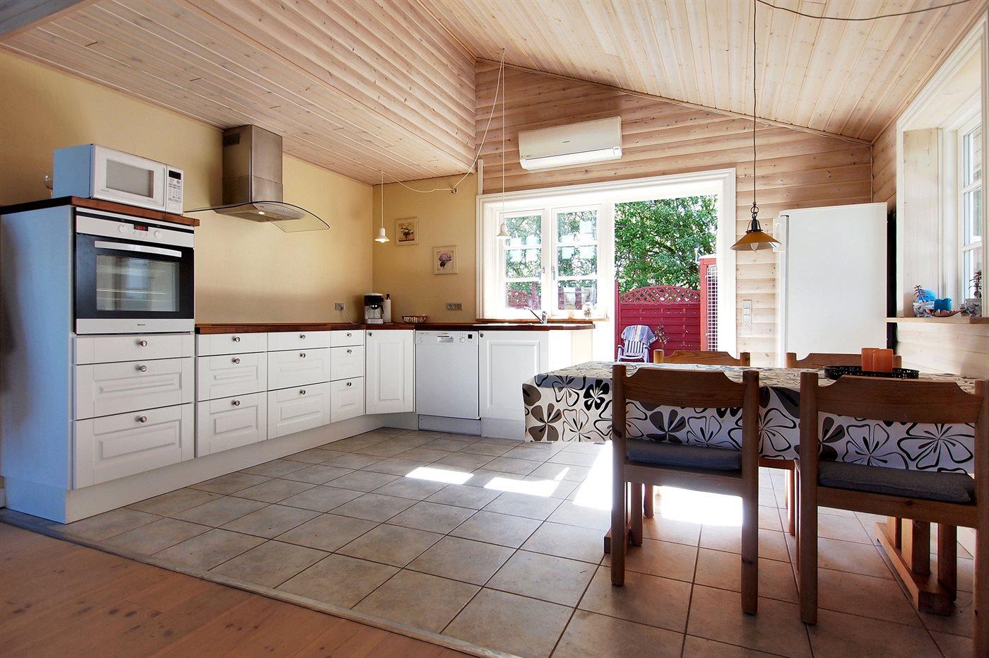 Køkkenet er udstyret med 2 køleskabe. Der er 4 keramiske kogeplader, varmluftovn, mikrobølgeovn samt opvaskemaskine.