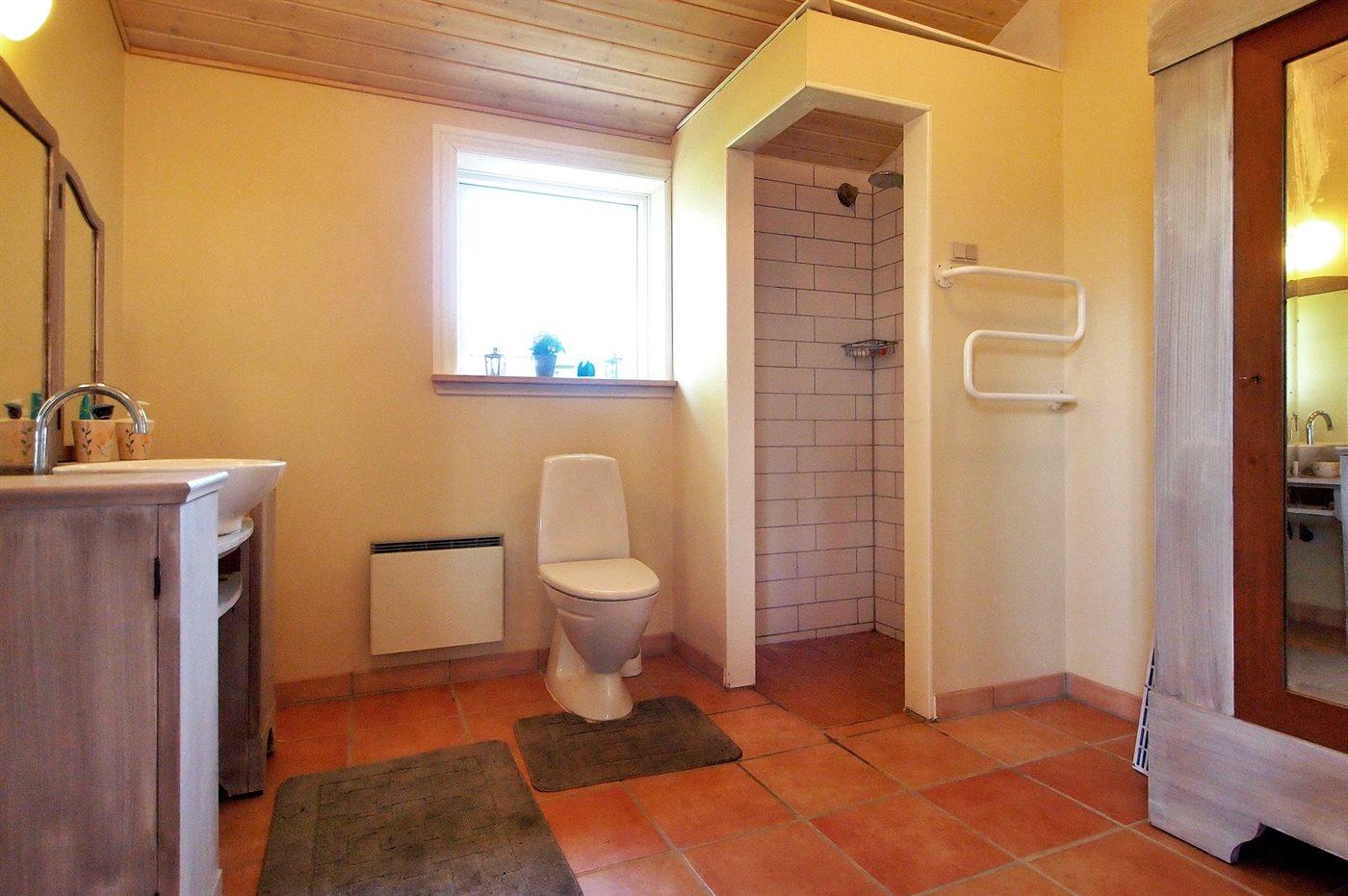 Der er 1 badeværelse med bruseniche og 1 toilet.