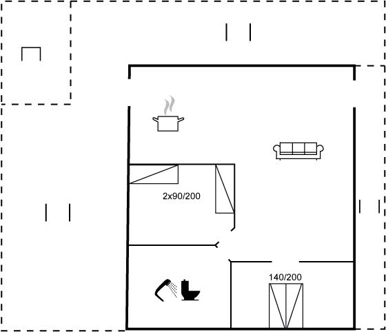 Der er i alt 2 soveværelser. Sovepladserne fordeler sig på: 2 sovepladser i dobbeltseng. 2 sovepladser i enkeltsenge. 2 sovepladser på madrasser. 2 af disse sovepladser befinder sig på husets hems.