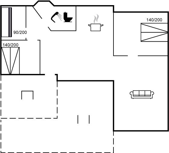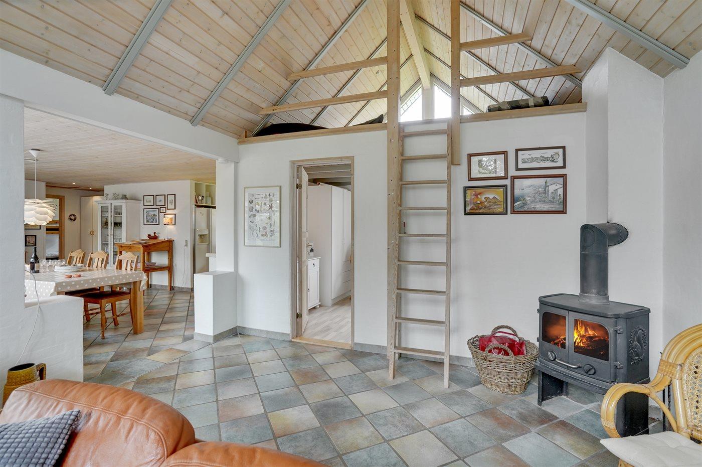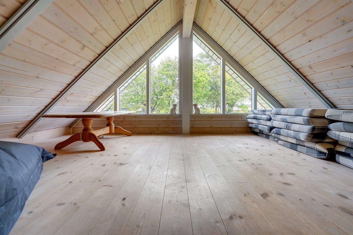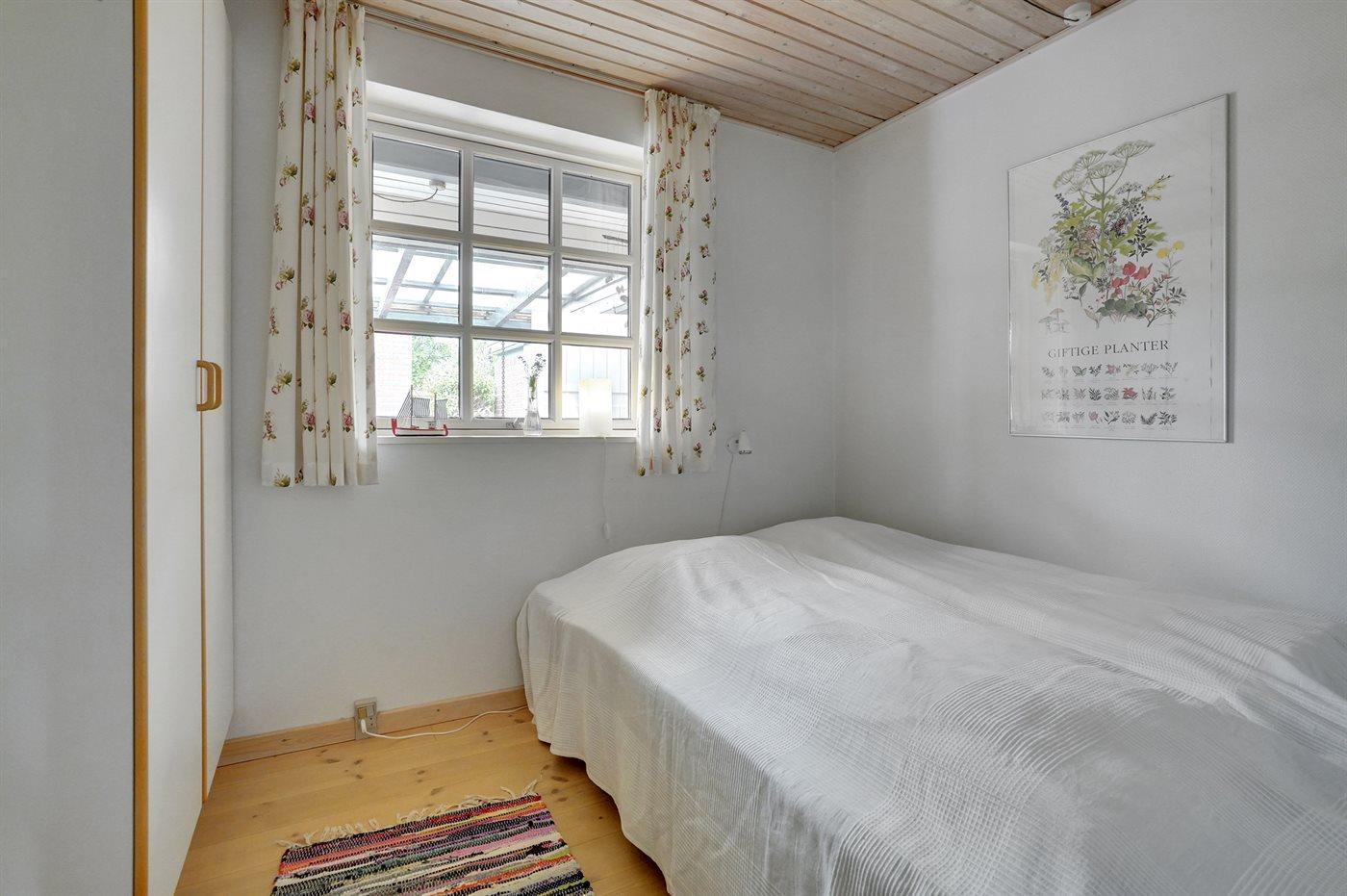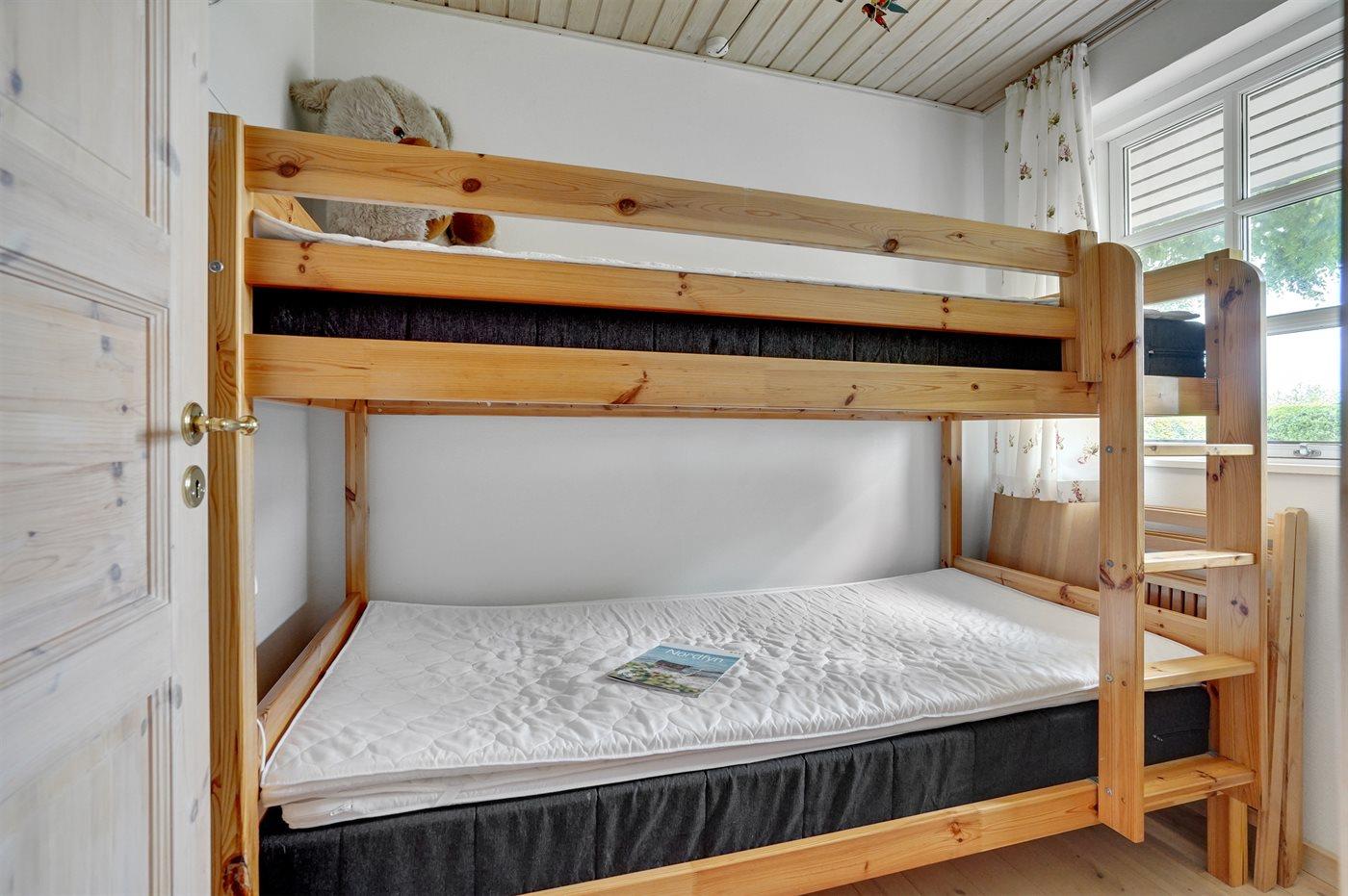 Der er i alt 3 soveværelser. Sovepladserne fordeler sig på: 4 sovepladser i dobbeltsenge. 2 sovepladser i køjeseng. 2 sovepladser på madrasser. 2 af disse sovepladser befinder sig på husets hems.