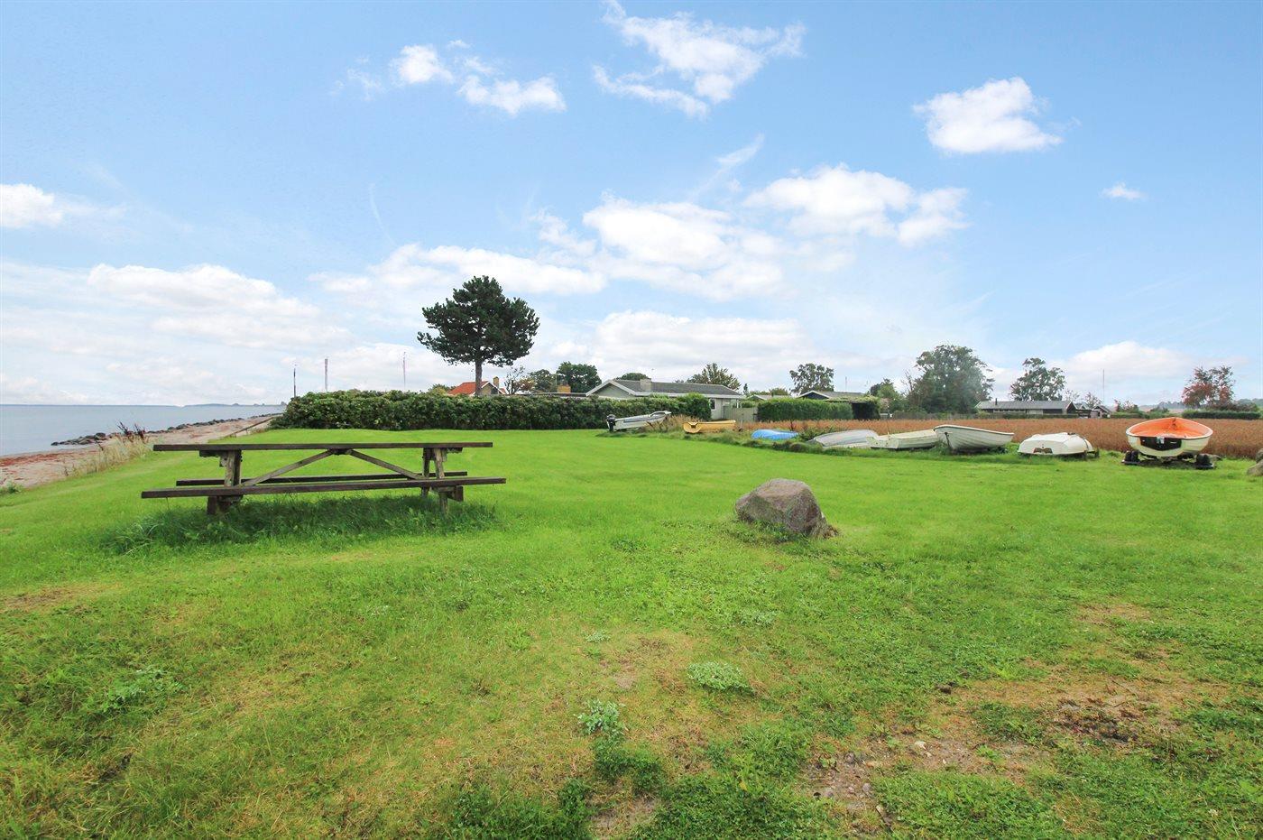 Ferieboligen er beliggende på en 770 m² stor havegrund. Der er 75 m til havet. Nærmeste forretning er beliggende i en afstand af 2900 m. Til ferieboligen hører 25 m² terrasseareal. Desuden er der 14 m² overdækket terrasse. Heraf i alt 14 m² lukket terrasse. Der er carport til rådighed. Parkering ved ferieboligen.
