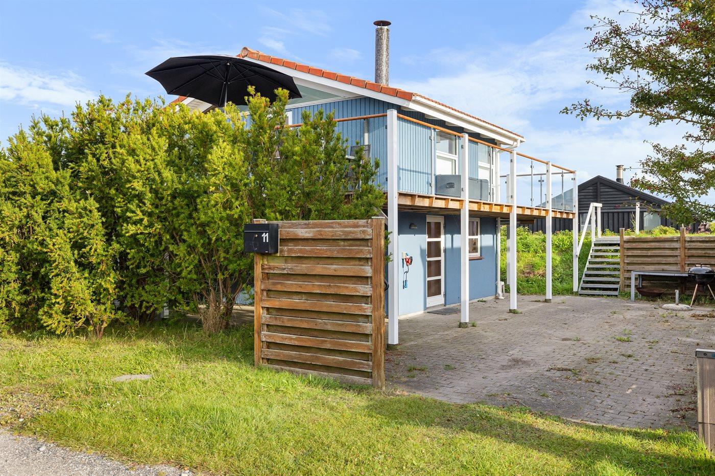Hyggeligt sommerhus nær stranden i Tørresø med havudsigt og terrasse hele vejen rundt.