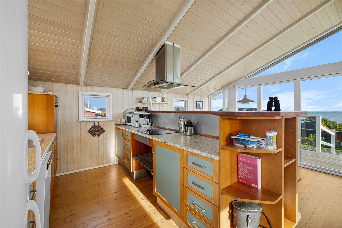Køkkenet er udstyret med 1 køleskab. Der er 4 keramiske kogeplader, varmluftovn, mikrobølgeovn samt opvaskemaskine.