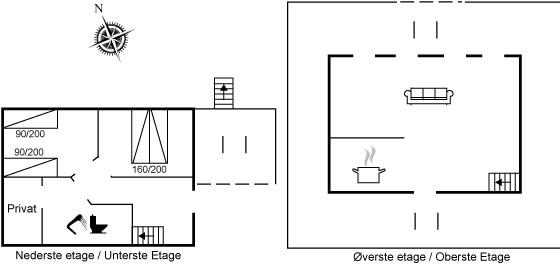 Der er i alt 2 soveværelser. Sovepladserne fordeler sig på: 2 sovepladser i dobbeltseng. 2 sovepladser i enkeltsenge. Derudover er der 1 stk. barneseng.