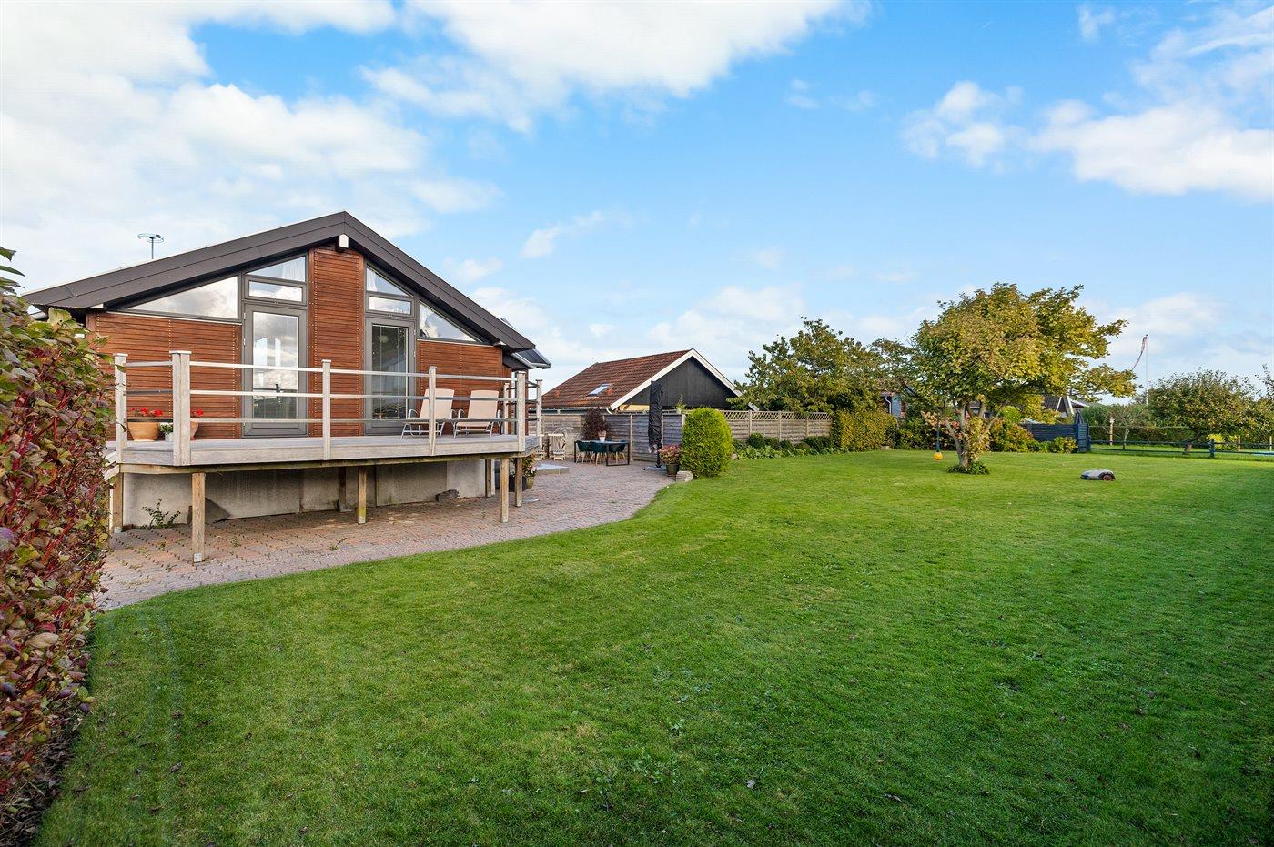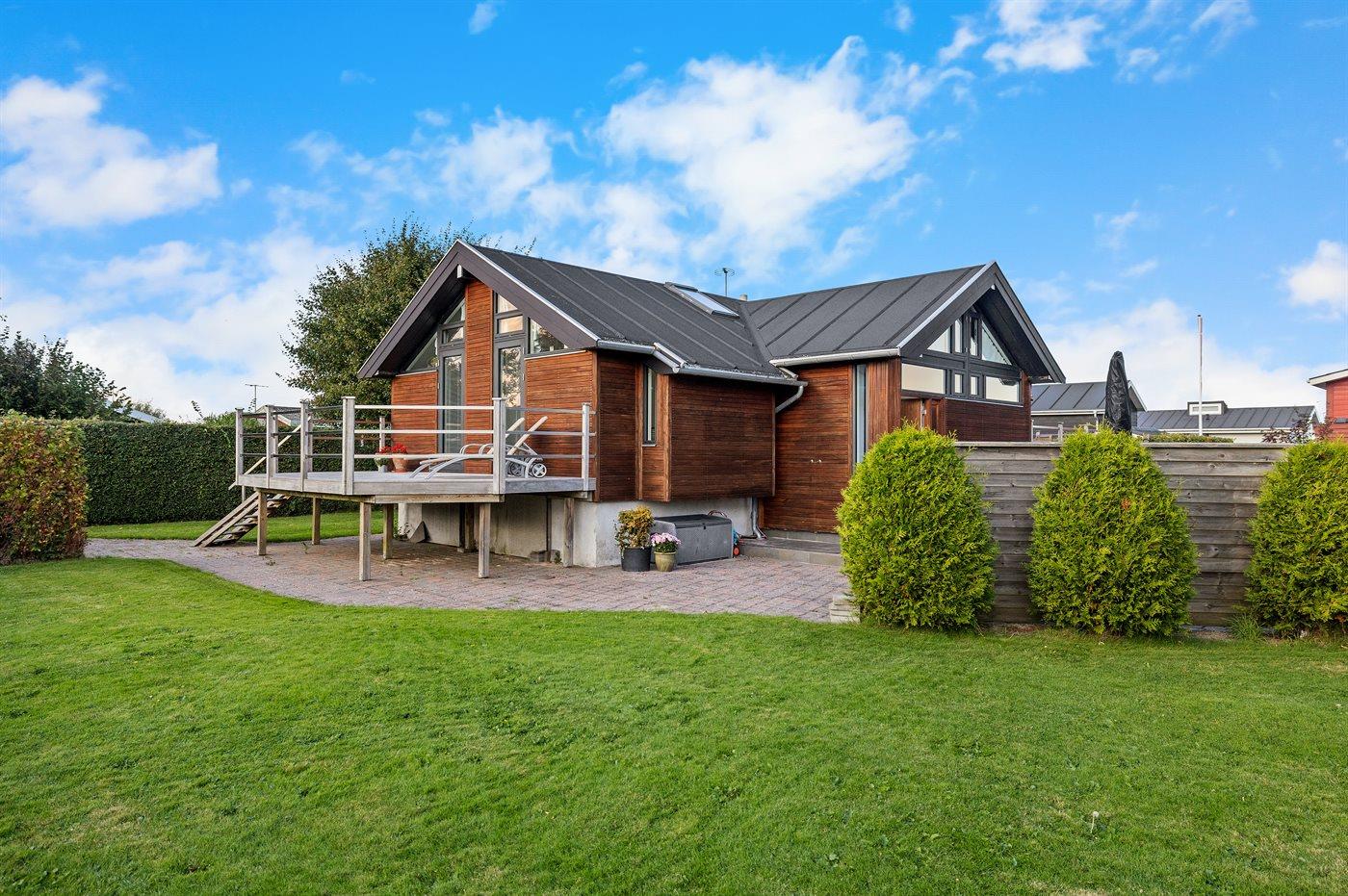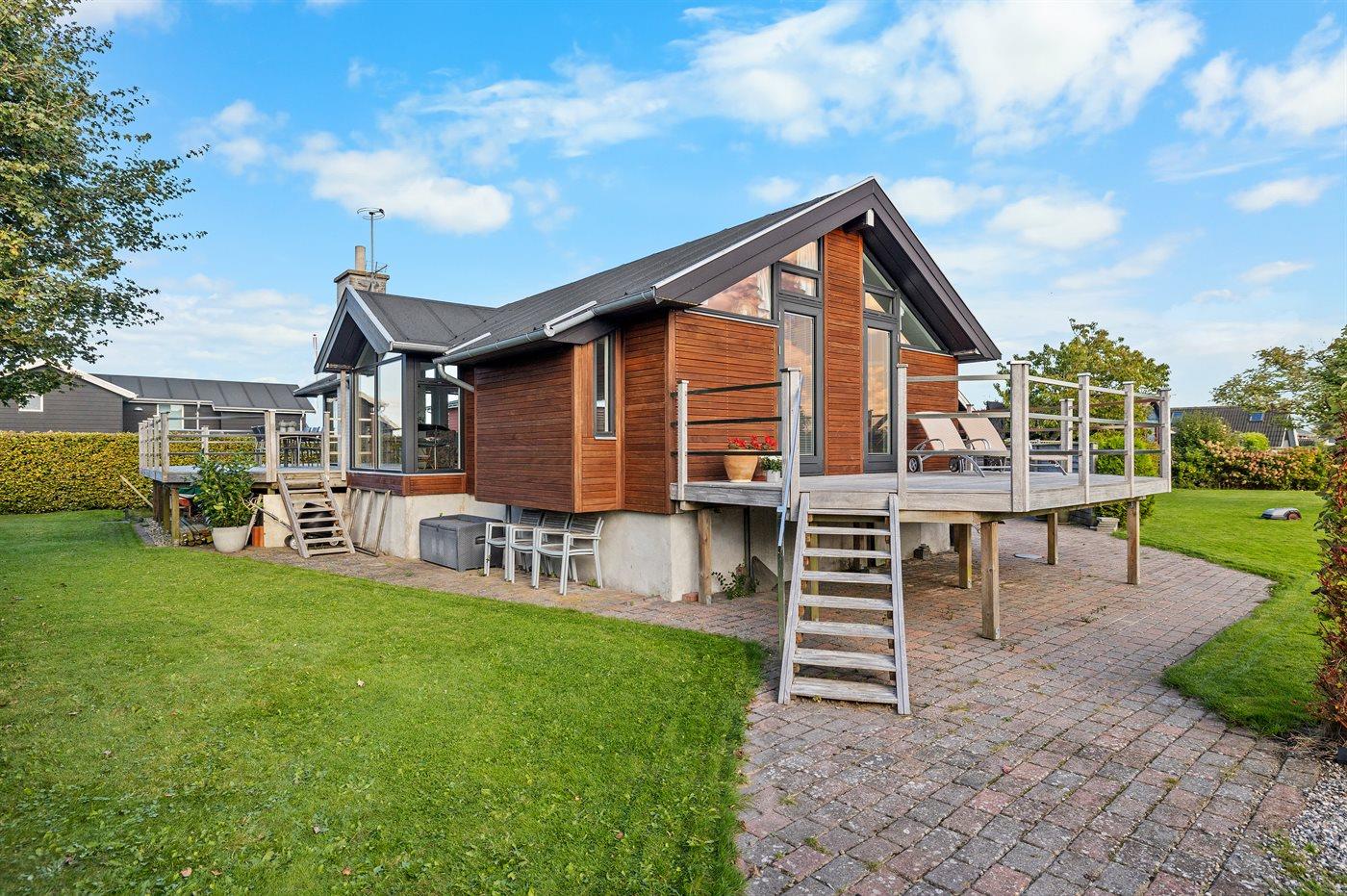 Flot sommerhus med havudsigt og store terrasser tæt på vandet i Otterup.